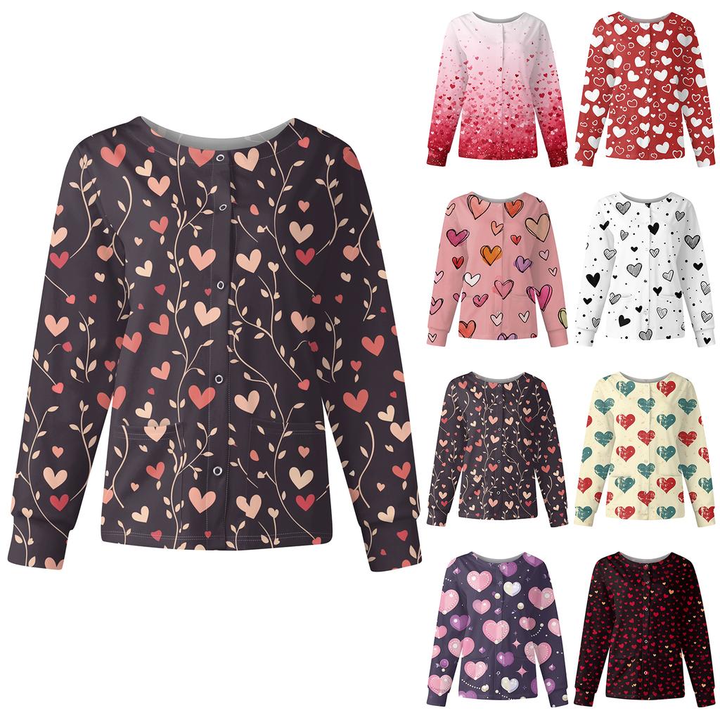 Женская повседневная модная куртка с длинным рукавом, воротником-стойкой, на одной пуговице, с принтом ко Дню святого Валентина, рабочая куртка, топы