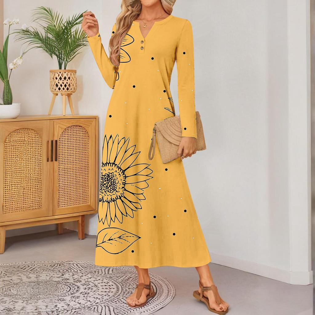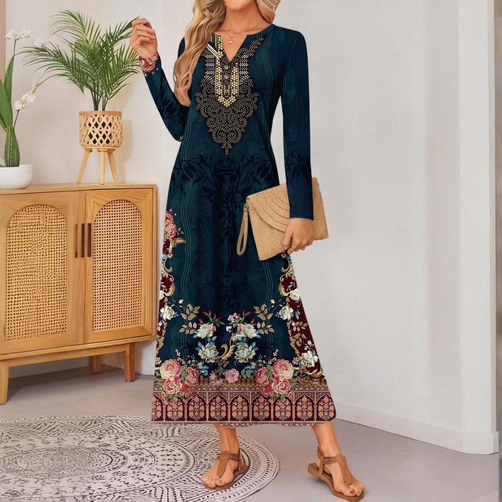 Женское ретро-платье с принтом, с длинным рукавом, удобное, свободного кроя, элегантное платье
