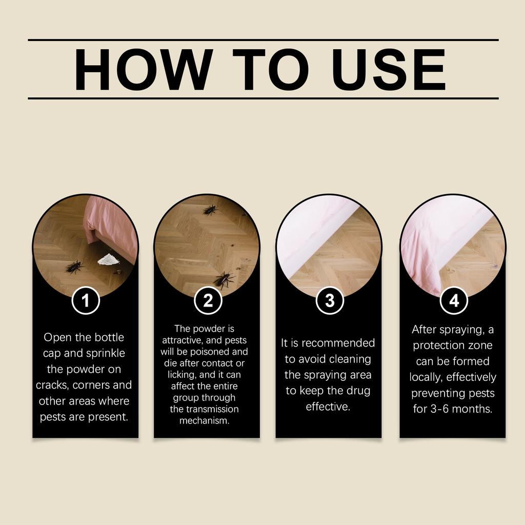 Целевые практические ингредиенты для снижения количества насекомых внутри и снаружи в инсектицидном порошке. Подходит для использования на кухнях, в гостиных и на открытом воздухе.