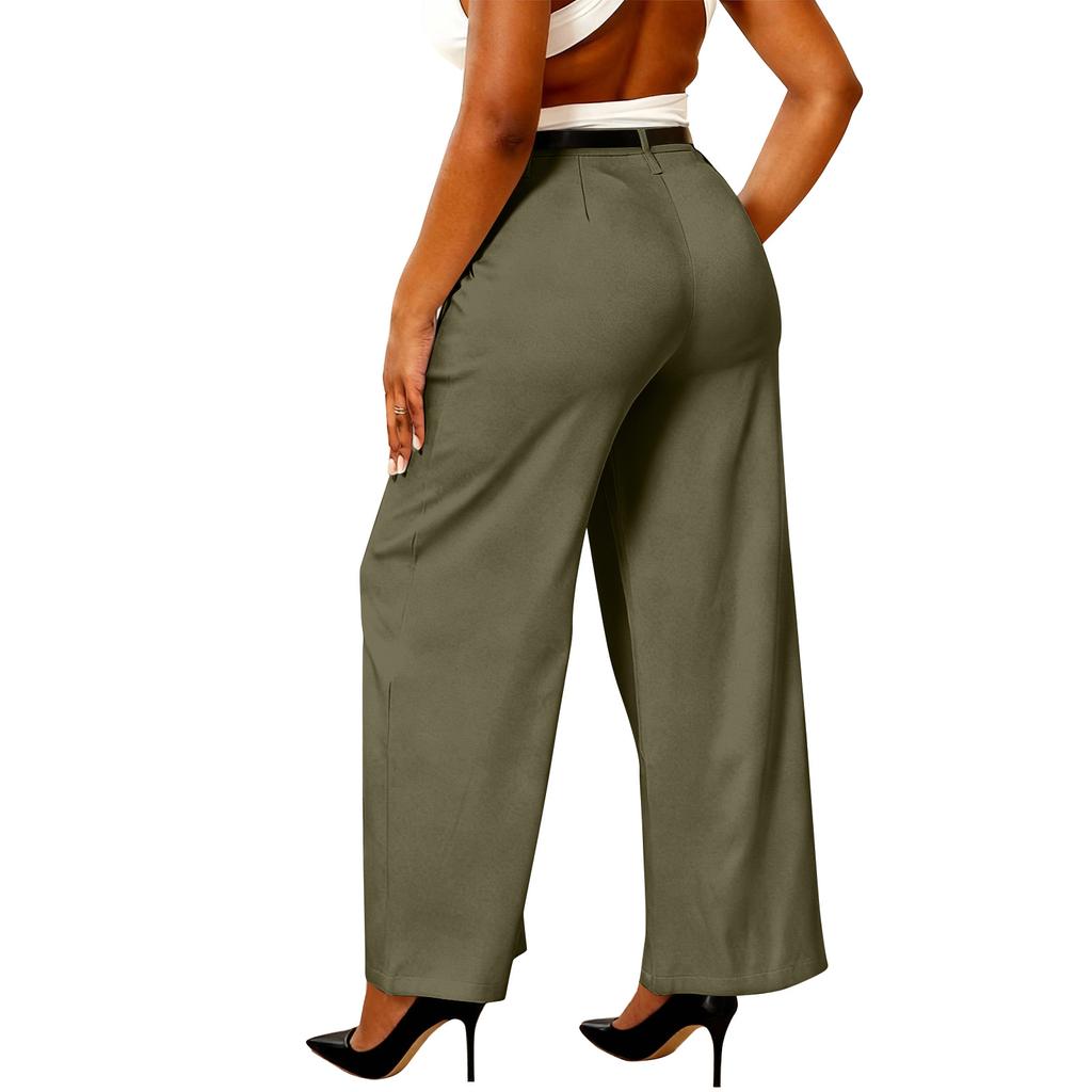 Женские брюки широкие от бедра, брюки прямого кроя с высокой посадкой для бизнеса, длинные брюки с поясом