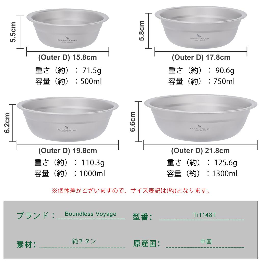 Boundless Voyage Titanium Deep Lightweight and for Outdoor Camping Ti1148T Bowl, Soup/Ramen Bowl, Stackable, (500/750/1000/1300ml)