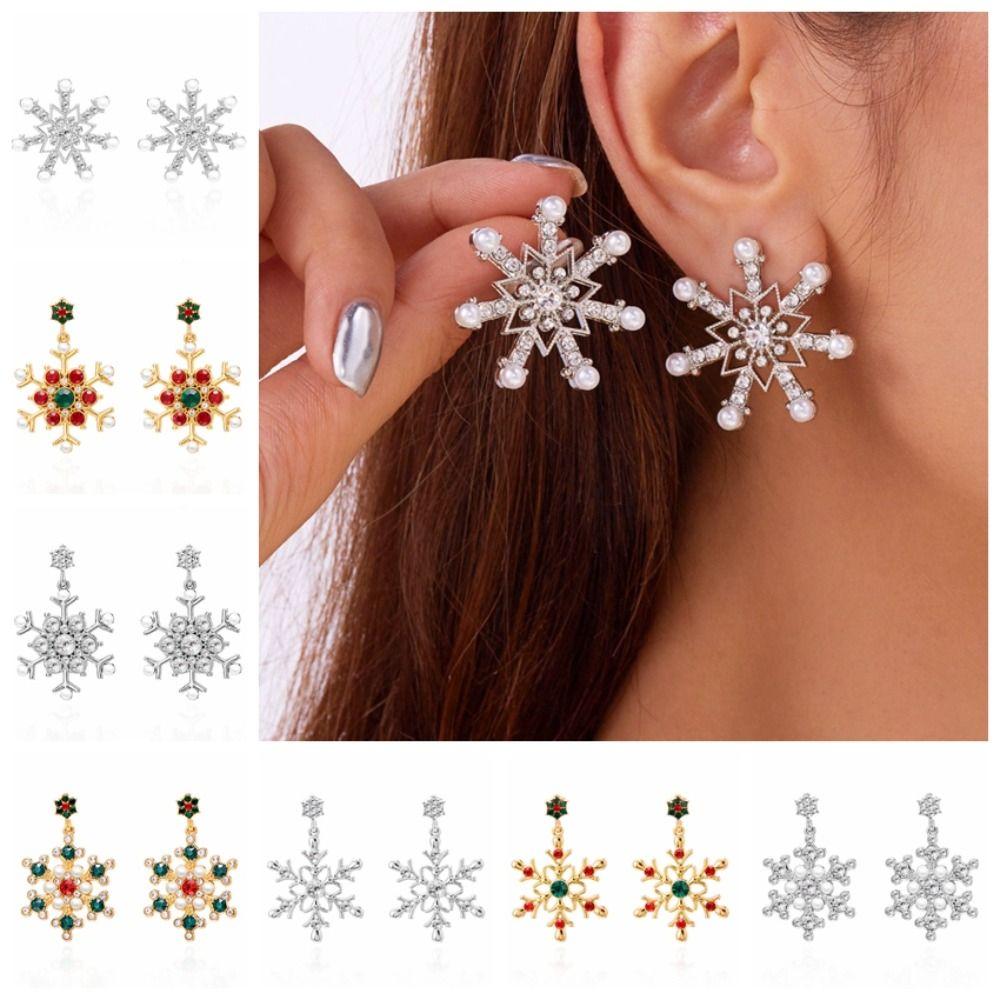 Pearl Snowflake Earrings Rhinestone Xmas Dangle Earrings Fashion Christmas Stud Earrings Girls