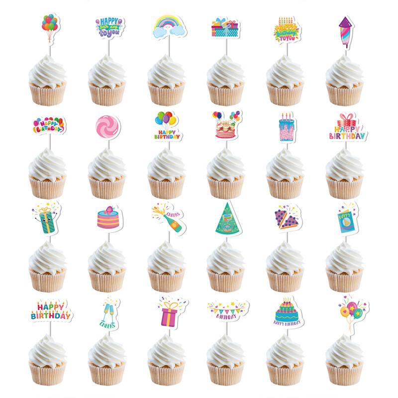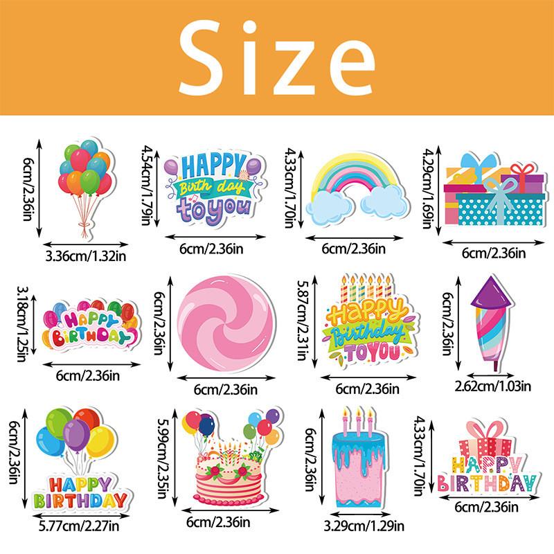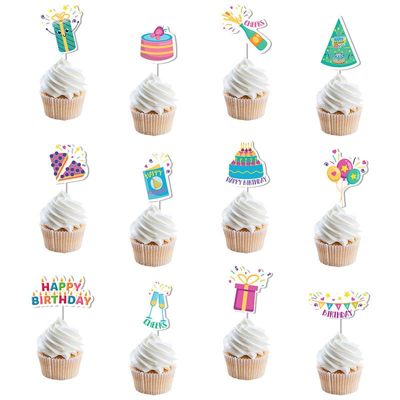 Этот бумажный набор для украшения торта на тему дня рождения включает 12 красочных декоративных флажков, предназначенных для улучшения презентации торта.. Сделано из прочной бумаги. Эти топперы для торта поддерживают праздничные события и декор мероприятий.