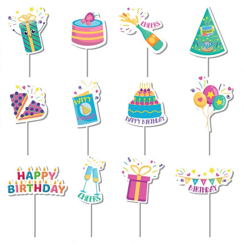 Флажки-Украшения Для Торта На День Рождения С Бумажными Флажками Для Празднований Набор Из 12 Штук