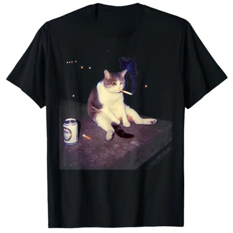 Сигаретный котенок Смешной курящий кот Мем Тупой маразм Женская футболка Милый котенок Папа Графический наряд Мужская мода Y2k Юмористическая футболка