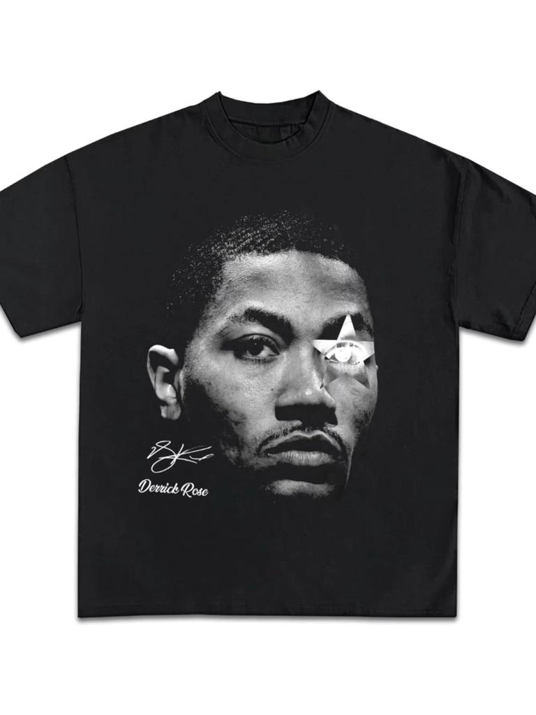 Графическая футболка D Rose Y2K Винтажная Баскетбольная Рэп Премиум Тяжелый Хлопок Модная Футболка Свитшот с Круглым Вырезом и Короткой Рукавой