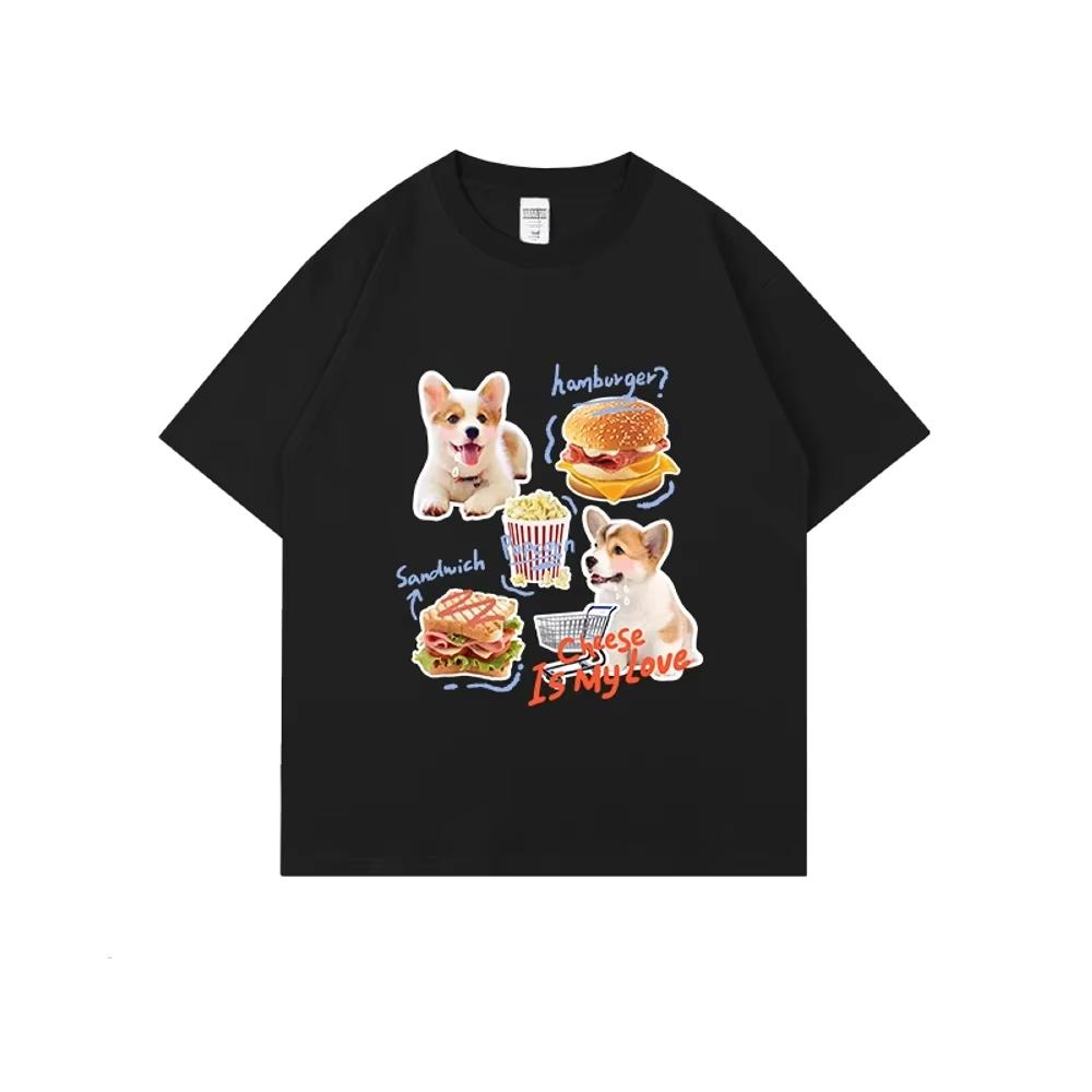 Кавайный щенок и котенок Графический принт Осень Чистый хлопок Мужская и женская футболка Короткий рукав Уличная мода Тренд Одежда
