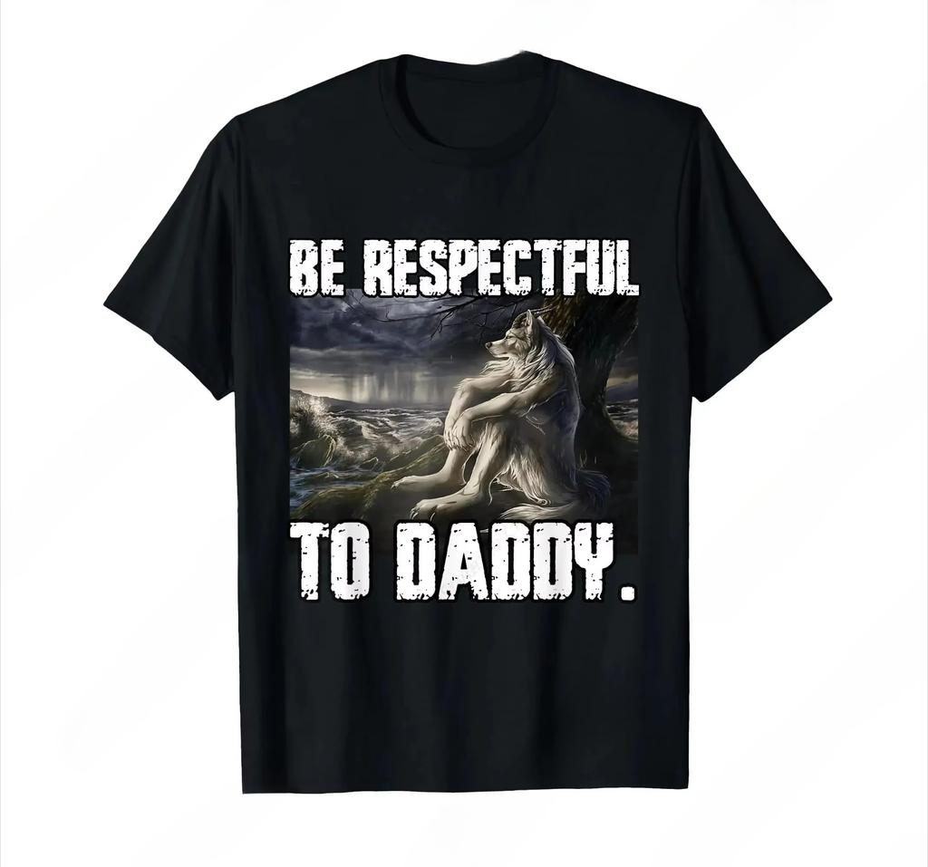 Проявляйте уважение к папочке Забавная футболка с мемом про альфа-оборотня Забавная футболка с волком Преобладающая мягкая футболка с короткими рукавами Футболка с круглым вырезом Женская