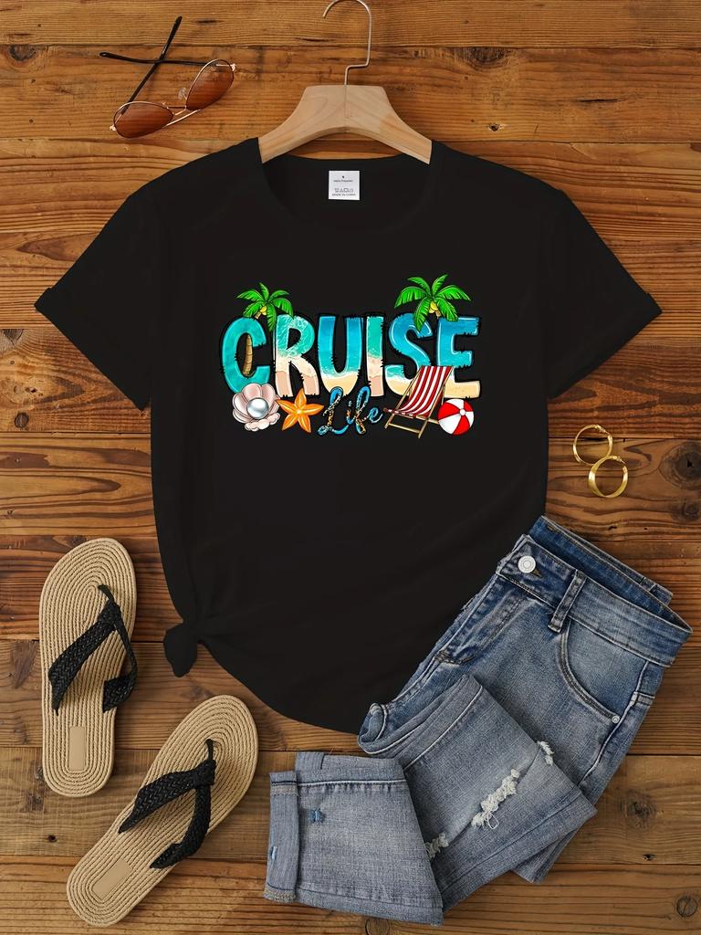 Cruise Life Print T-shirtShort Sleeve Crew Neck Casual Top For Summer & Spring Women's Clothing women t shirt