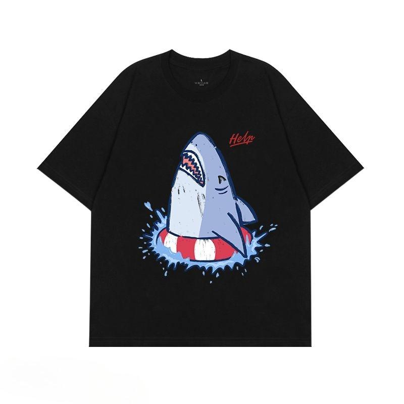 Мужская футболка с принтом «Тонущая акула», летняя, винтажная, каваий, мужская, женская, для серфинга, пляжная футболка, унисекс, дышащий повседневный топ