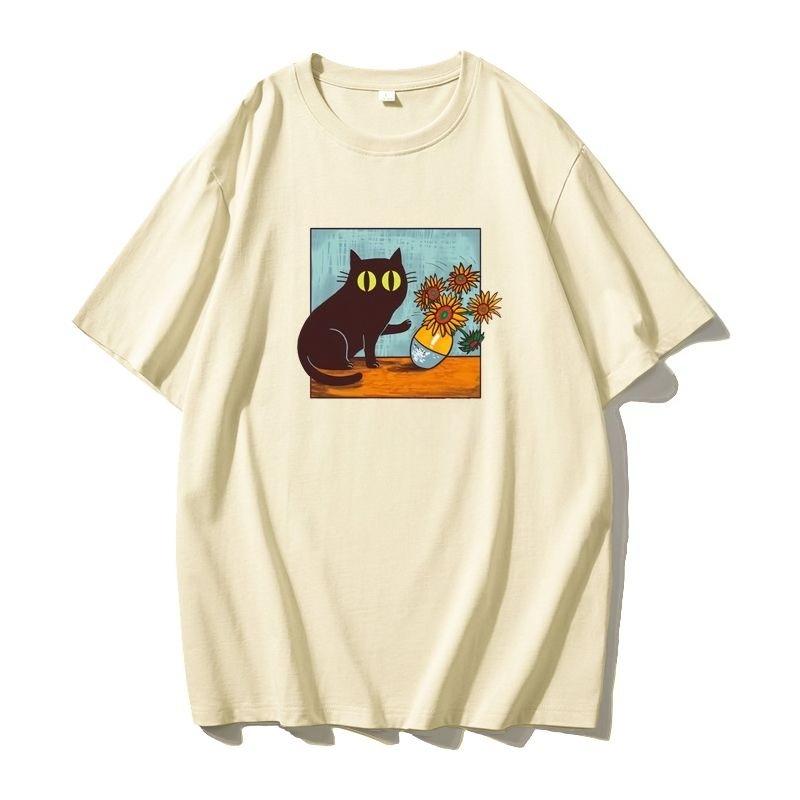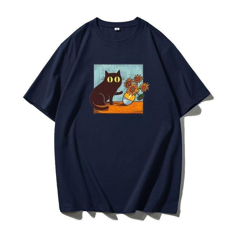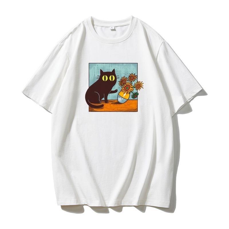 Милая Забавная Кошка Мужская Футболка с Принтом, Летняя Повседневная Универсальная Уличная Атмосфера, Крутой Дышащий Топ Оверсайз