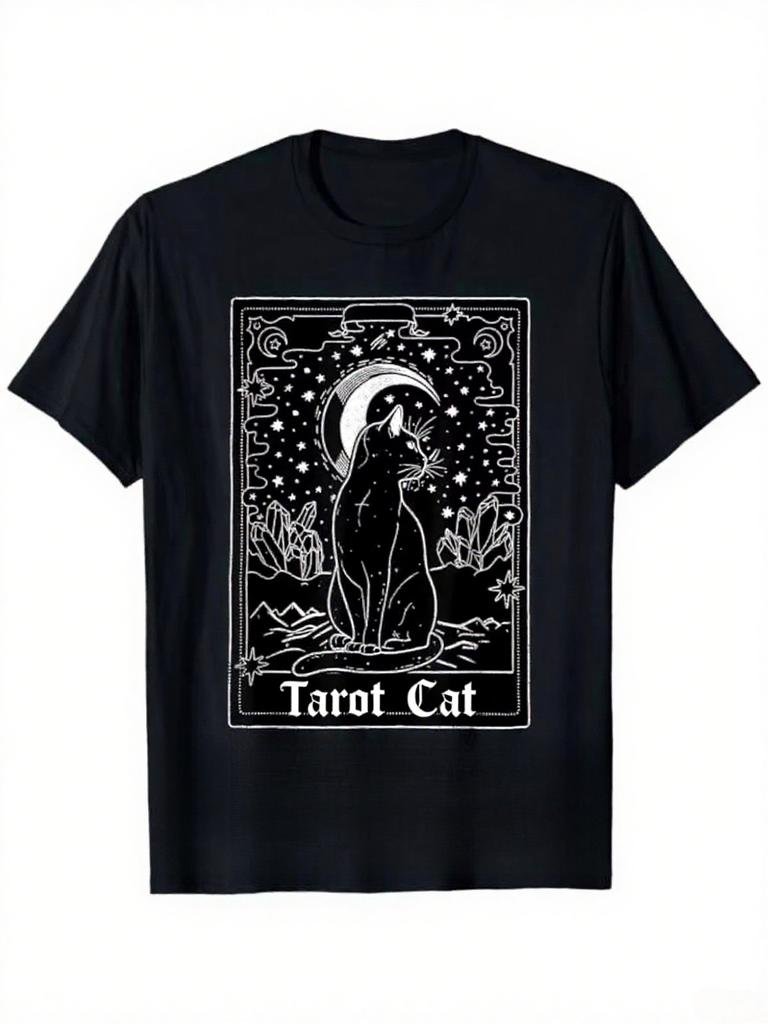 Графическая футболка для любителей кошек Таро 100% хлопок Круглый вырез Повседневная футболка с принтом для мужчин и женщин Всесезонная Осенне-зимнее нижнее белье
