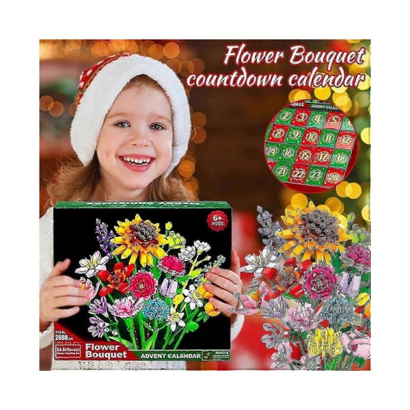 Flower Bouquet Blocks Christmas Advent Calendar, Xmas 24 Days Sunflower Bouquet Blind Box