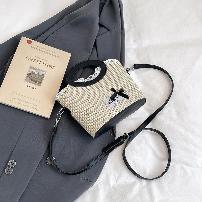 Сладкий бант плетеная сумка женская новая модная литературная портативная сумка-корзина для овощей сумка-мессенджер