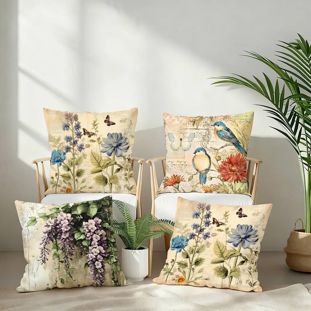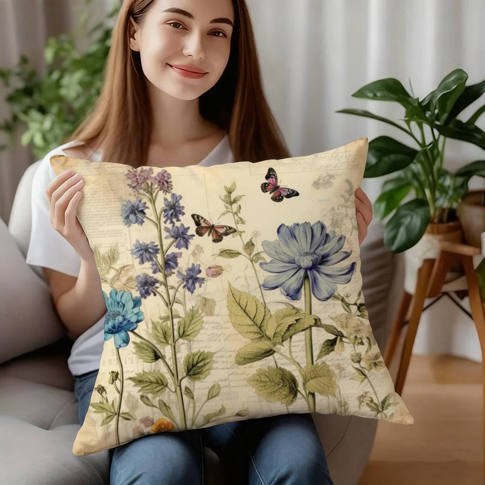 Винтажная наволочка с цветочным принтом, короткий плюш, декоративная, для дивана, подарок для дома, двусторонняя печать, подушка
