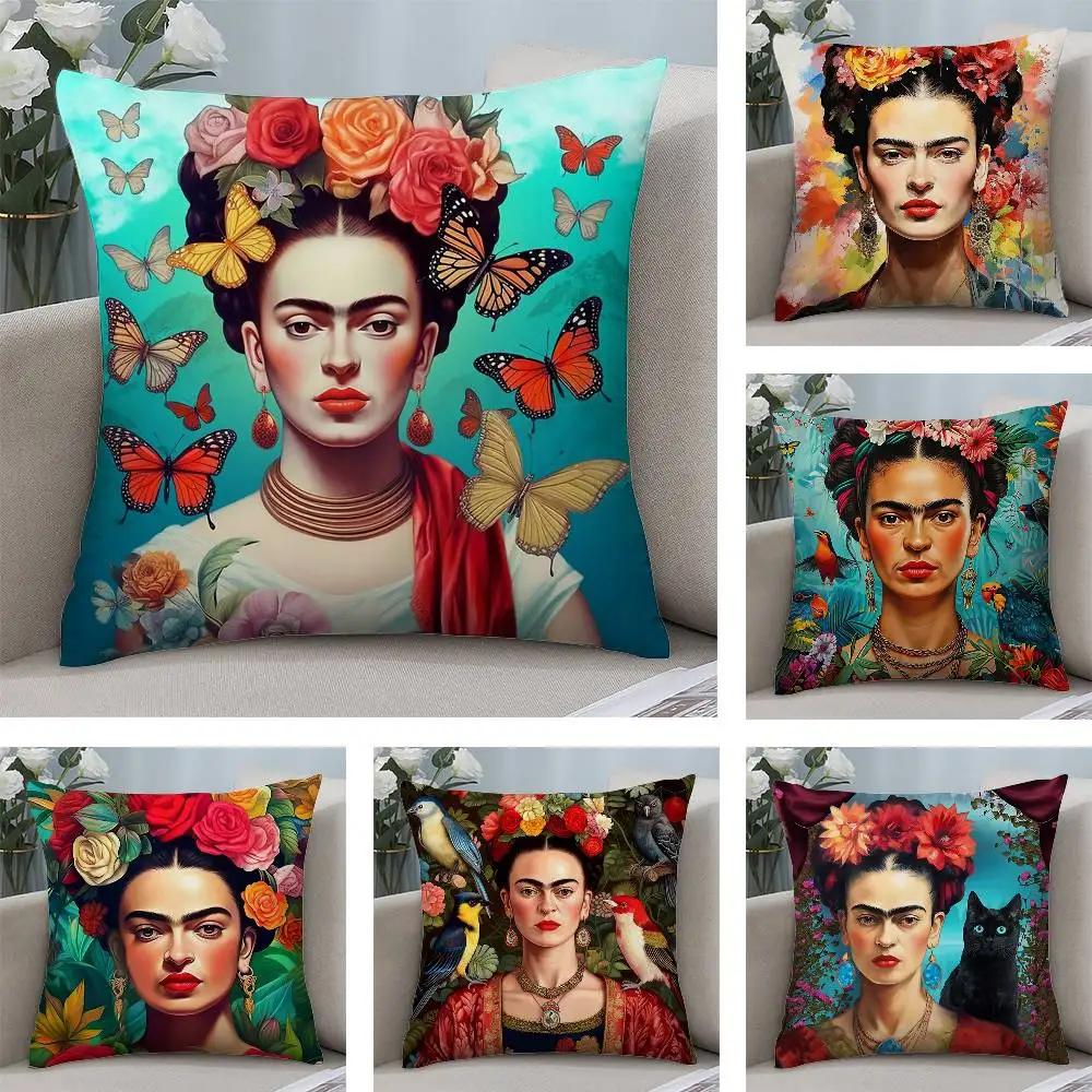 Ф-Фрида К-Кало Арт Наволочка Короткий плюш Двусторонняя печать Квадратные наволочки для диванных подушек Домашний декор для подушек