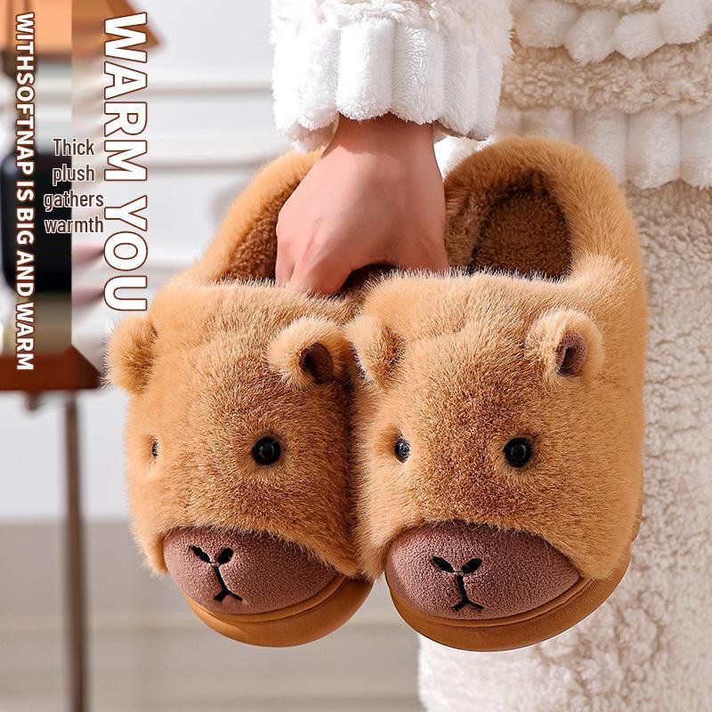 Хлопковые плюшевые тапочки-капибары - Зима 2025 | Теплая обувь для дома на толстой подошве для мужчин и женщин