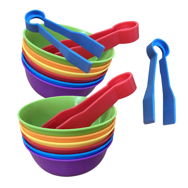 Toyvian Набор из 2 сортировочных чашек, Монтессори STEM пинцеты для малышей, Красочная игра на сопоставление, Игра в радужные чаши, Мягкие резиновые зажимы для детей