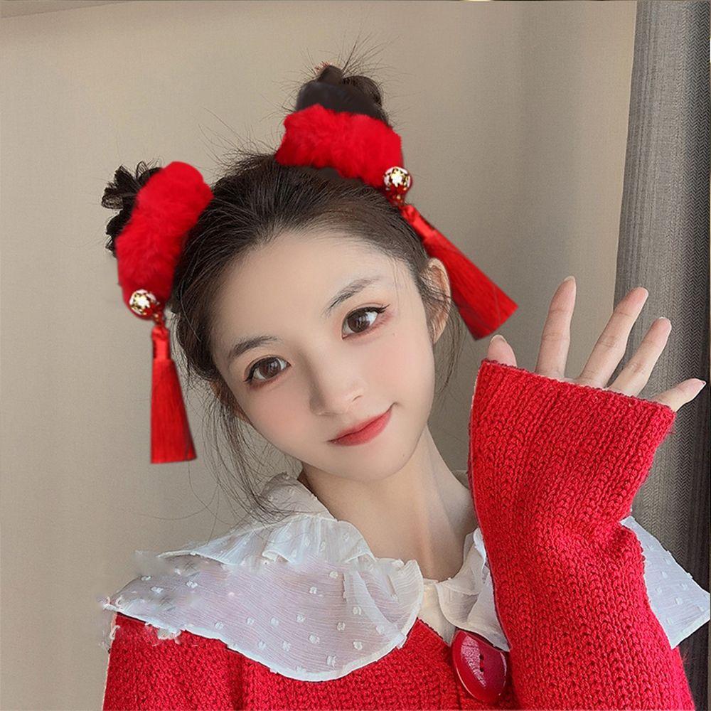 Bowknot Tassel Hairball New Year Hair Accessories Children's Headwear Plush Hair Rope Duckbill Clip