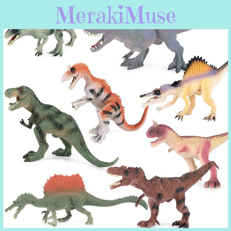 This dinosaur figurine set features realistic predator and herbivore models, crafted from durable plastic. Each model measures approximately 6 inches in length, showcasing detailed sculpting and vibrant colors, including Tyrannosaurus rex and Spinosaurus. These static figures are ideal for educational displays or creative play, supporting imaginative learning. To maintain their appearance, wipe with a damp cloth regularly.