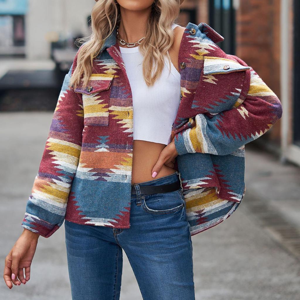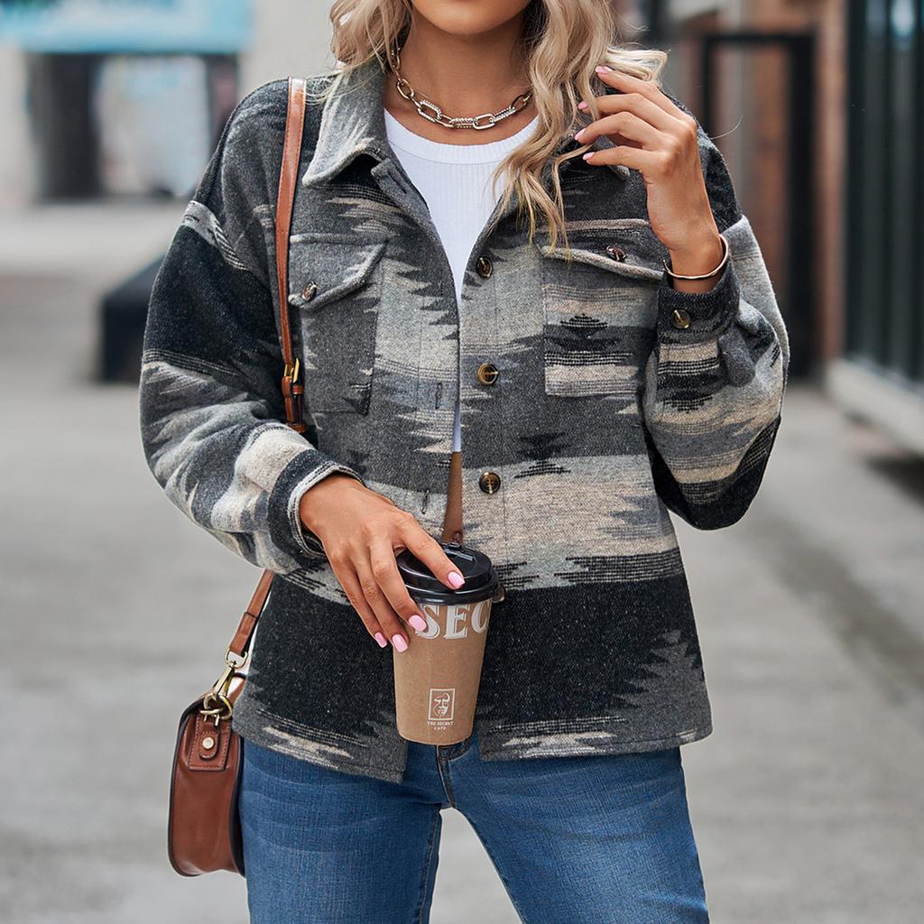 Женское модное пальто из шерсти с длинными рукавами, лацканами и принтом на пуговицах