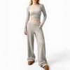 Женский топ с длинным рукавом и брюки с широкими штанинами на резинке на талии, модный повседневный костюм