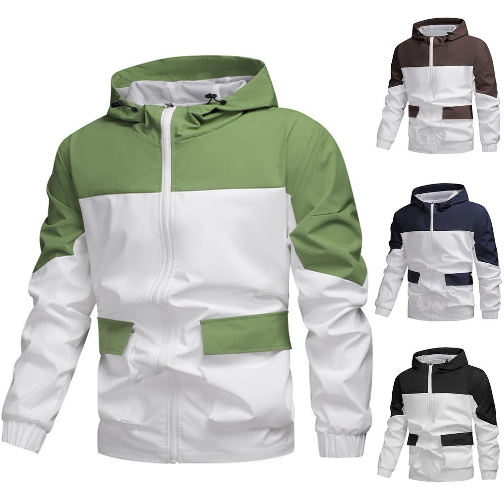 Мужские и женские куртки с капюшоном, рабочие куртки с цветовыми блоками, мужские спортивные повседневные легкие свободные ветрозащитные куртки на молнии
