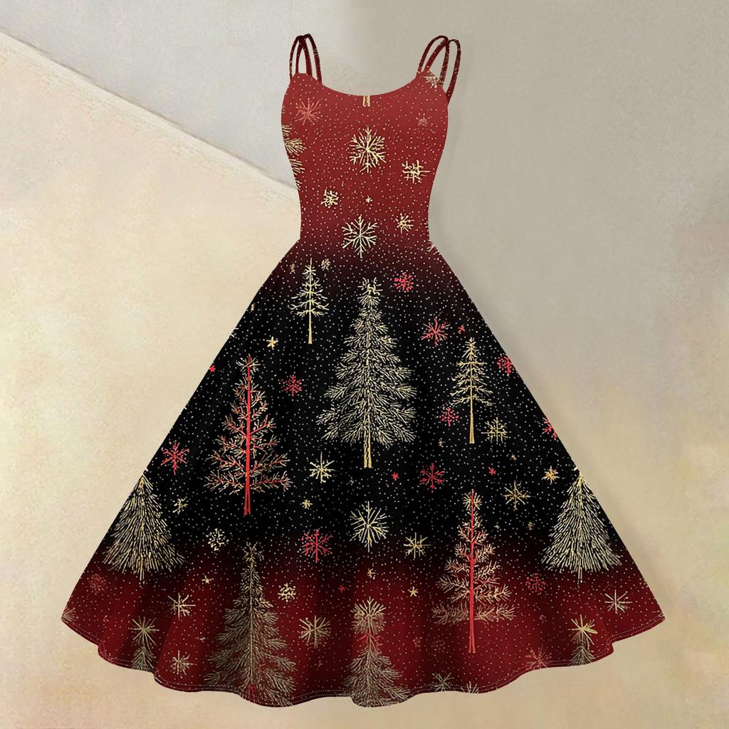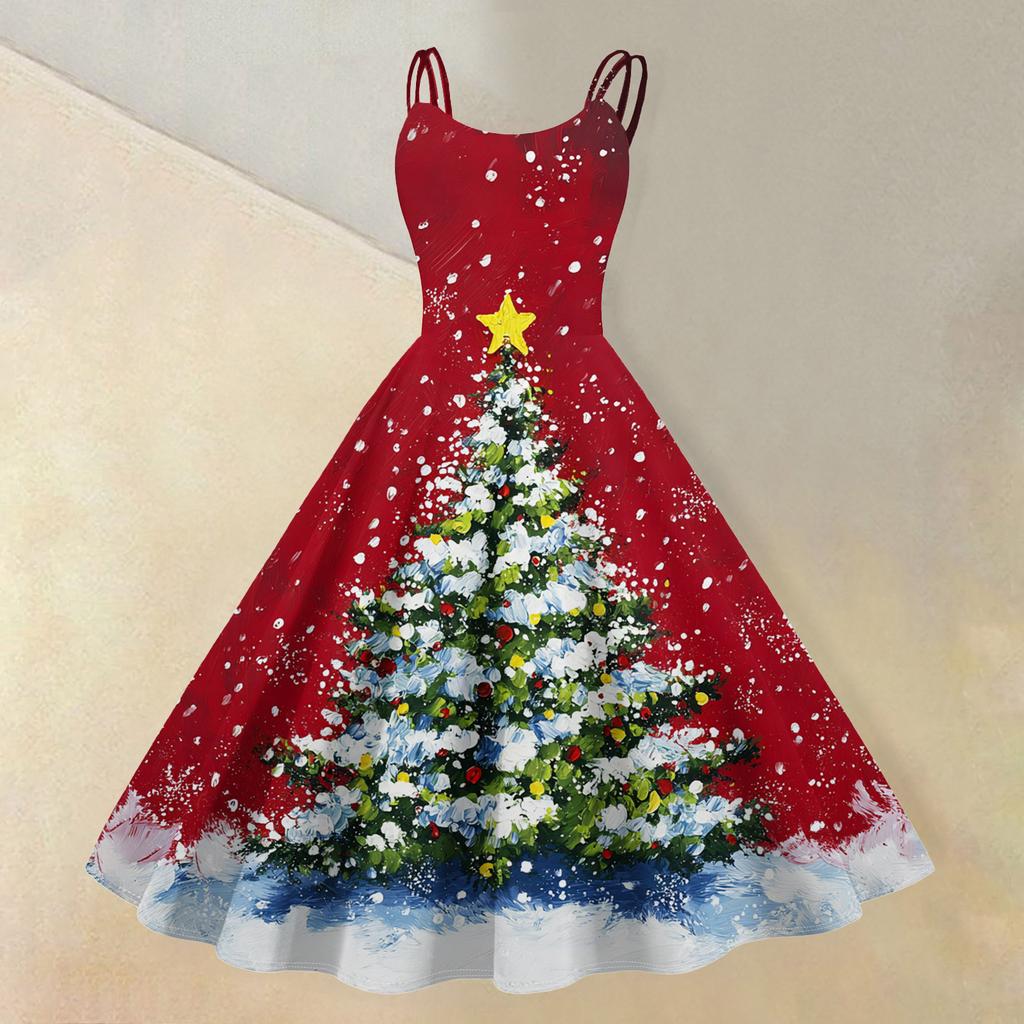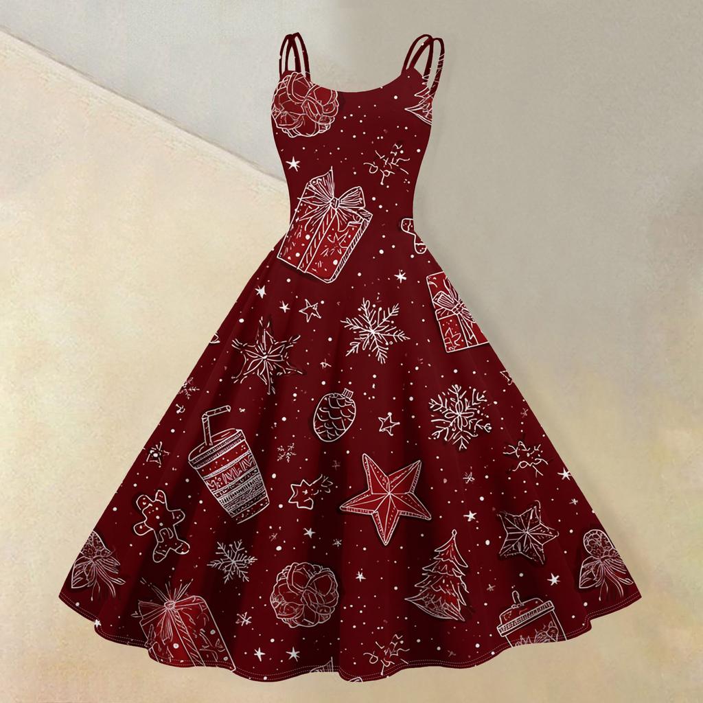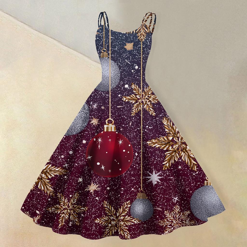 (счастливого Рождества) Женское повседневное модное платье в стиле ретро с принтом рождественской снежинки/рождественской елки/снеговика и круглым вырезом
