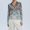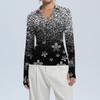 Женская Мода Повседневный Принт V-образный Вырез Длинный Рукав Застежка на Пуговицы Топ