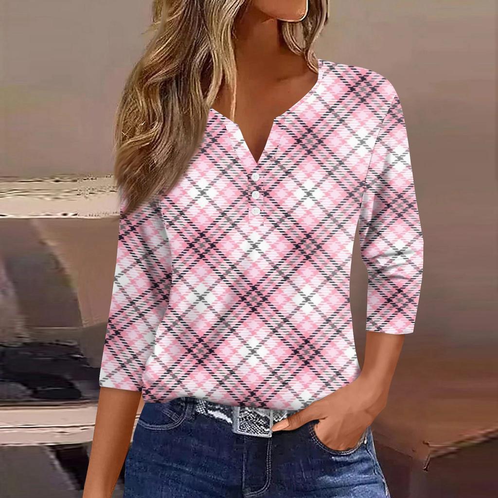 Женская футболка, футболка, принт, пуговица, рукав 3/4, туника, повседневная, выходная мода, базовая, V-образный вырез, обычный топ