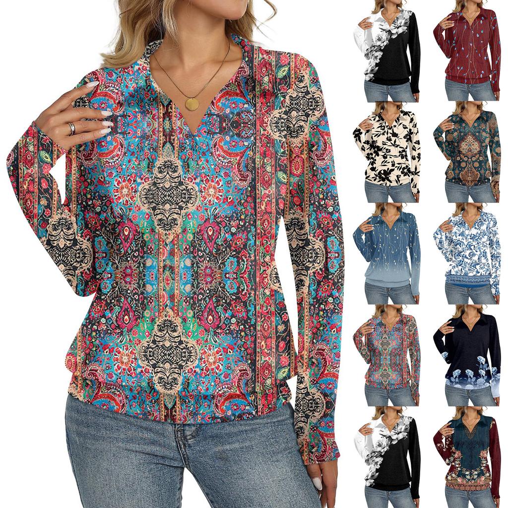 Женский модный топ с длинными рукавами в стиле ретро с принтом