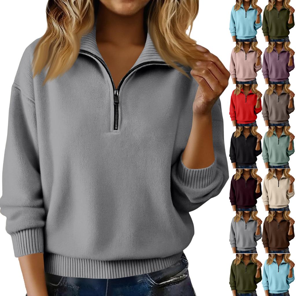 Свитера для женщин на молнии с длинным рукавом свободного кроя пуловер