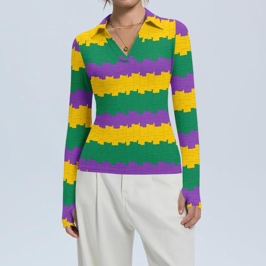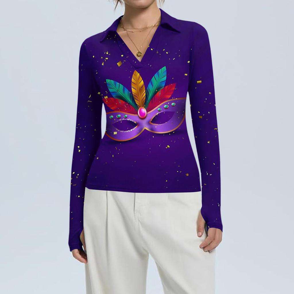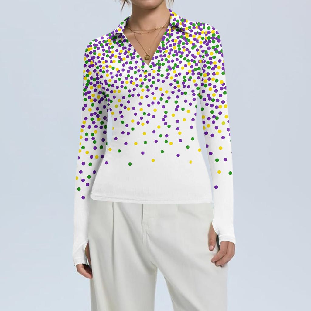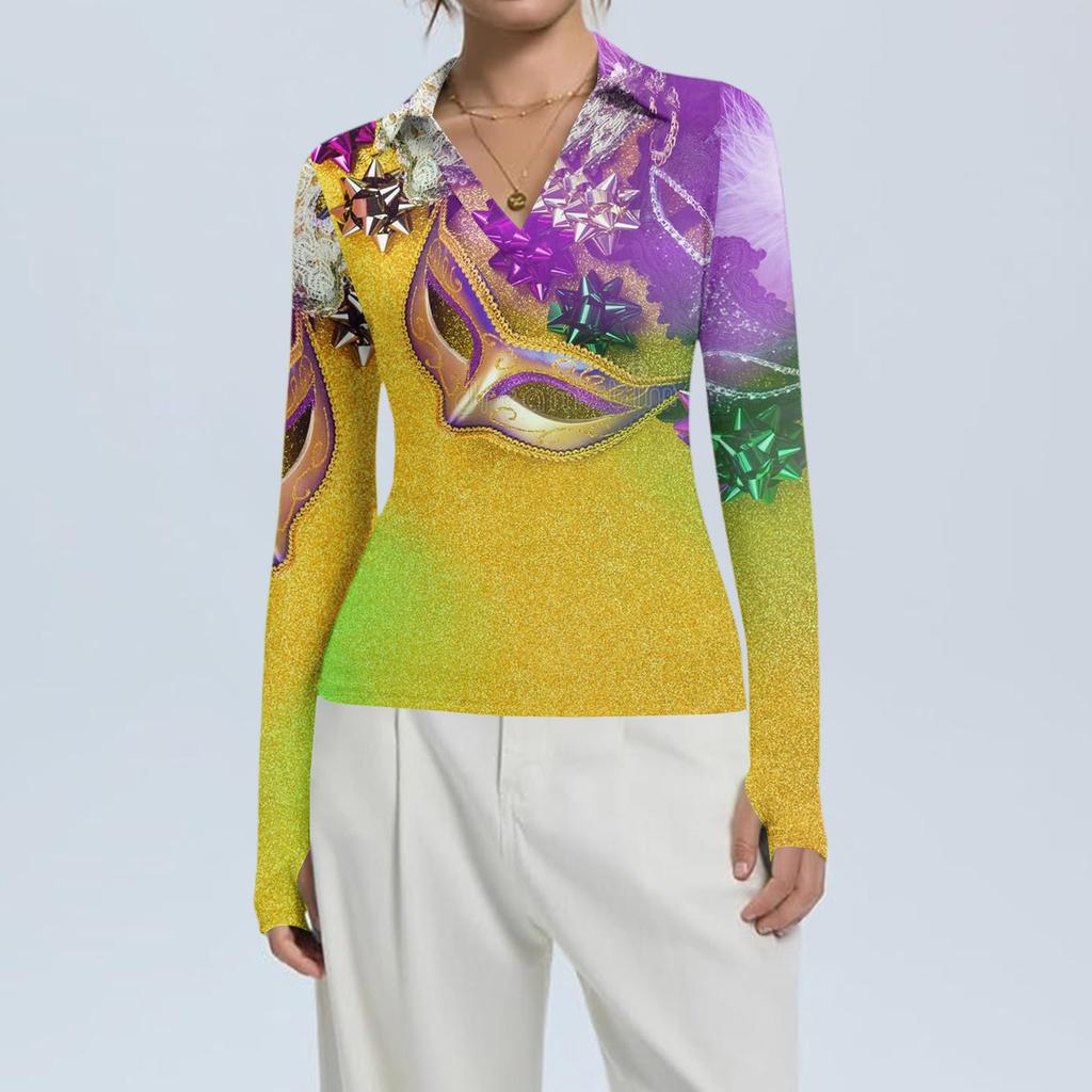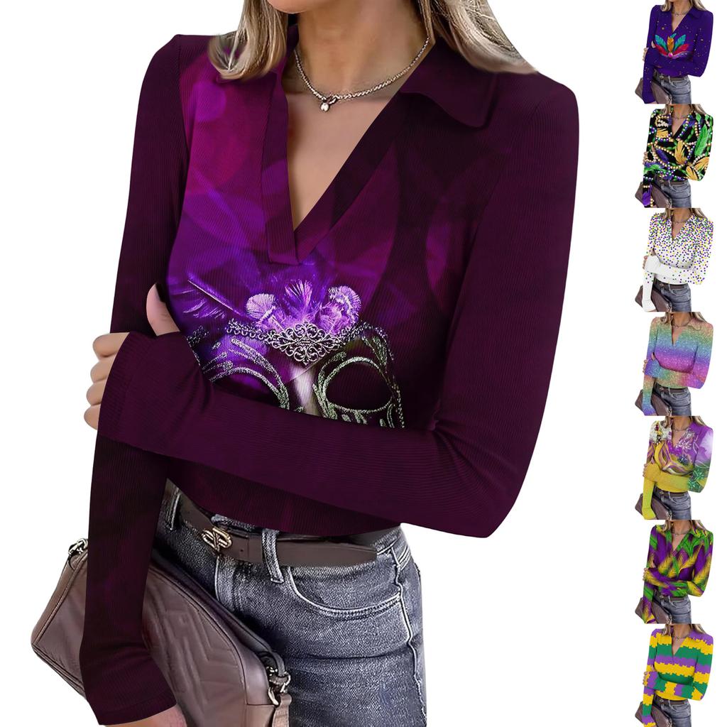 Женская Мода Повседневный Принт V-образный Вырез Длинный Рукав Застежка на Пуговицы Топ