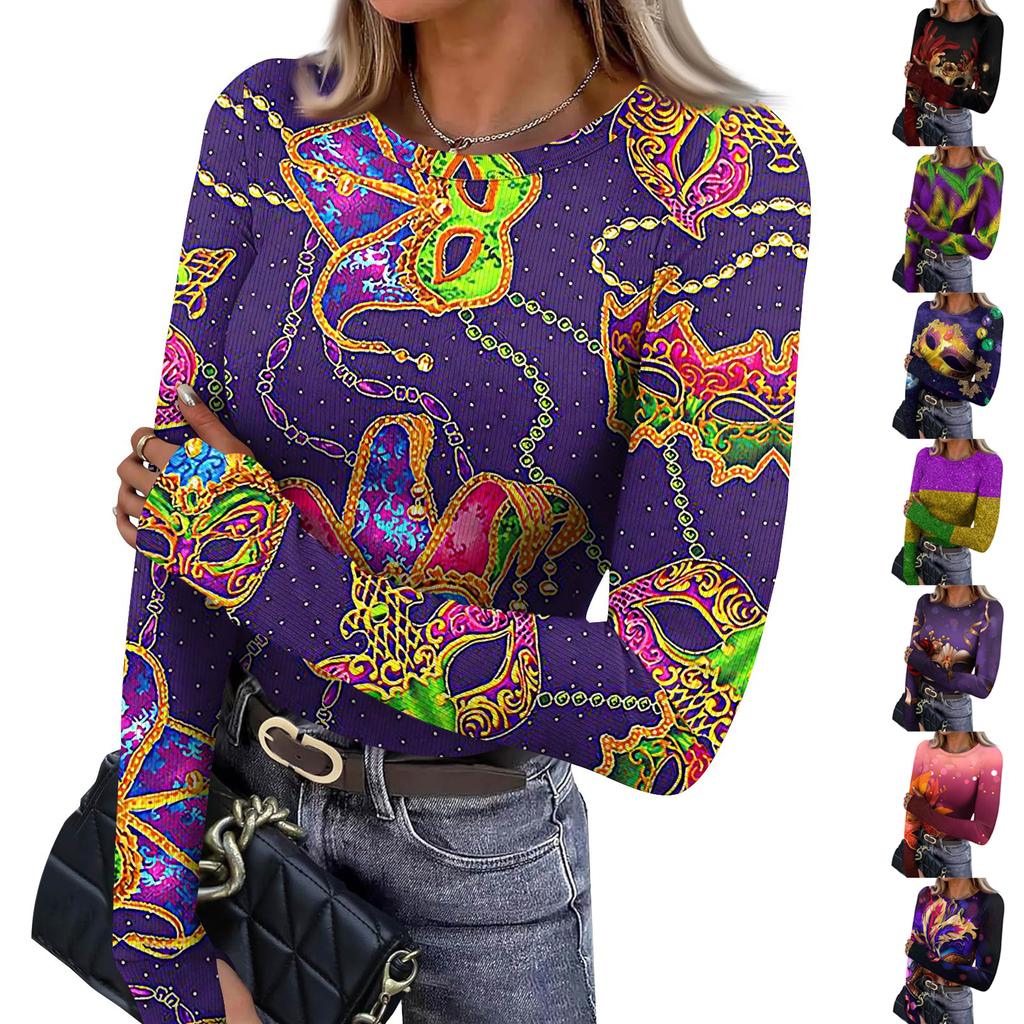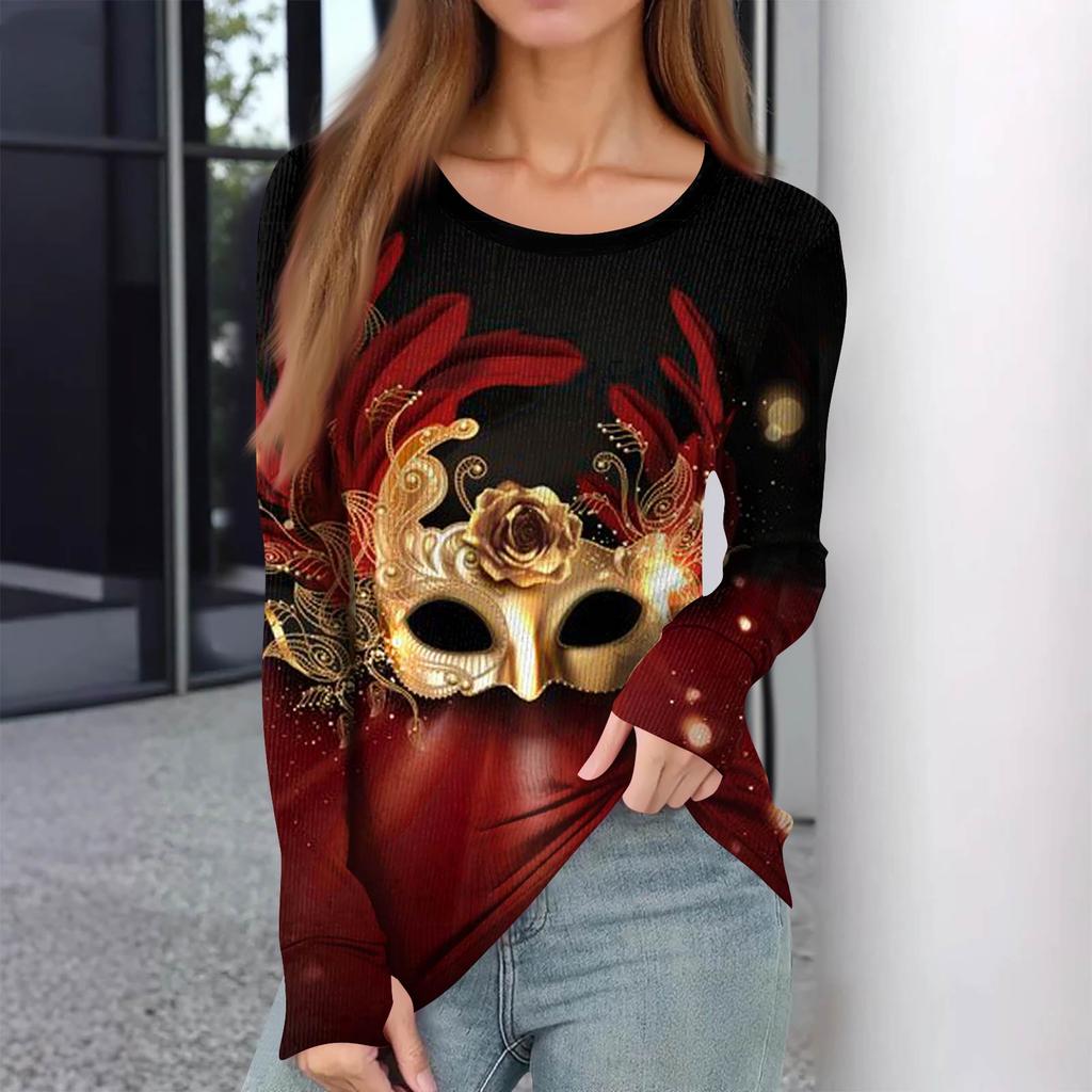 Женская зимняя приталенная футболка Модная повседневная с принтом, с круглым вырезом, пуловер, топ с длинным рукавом
