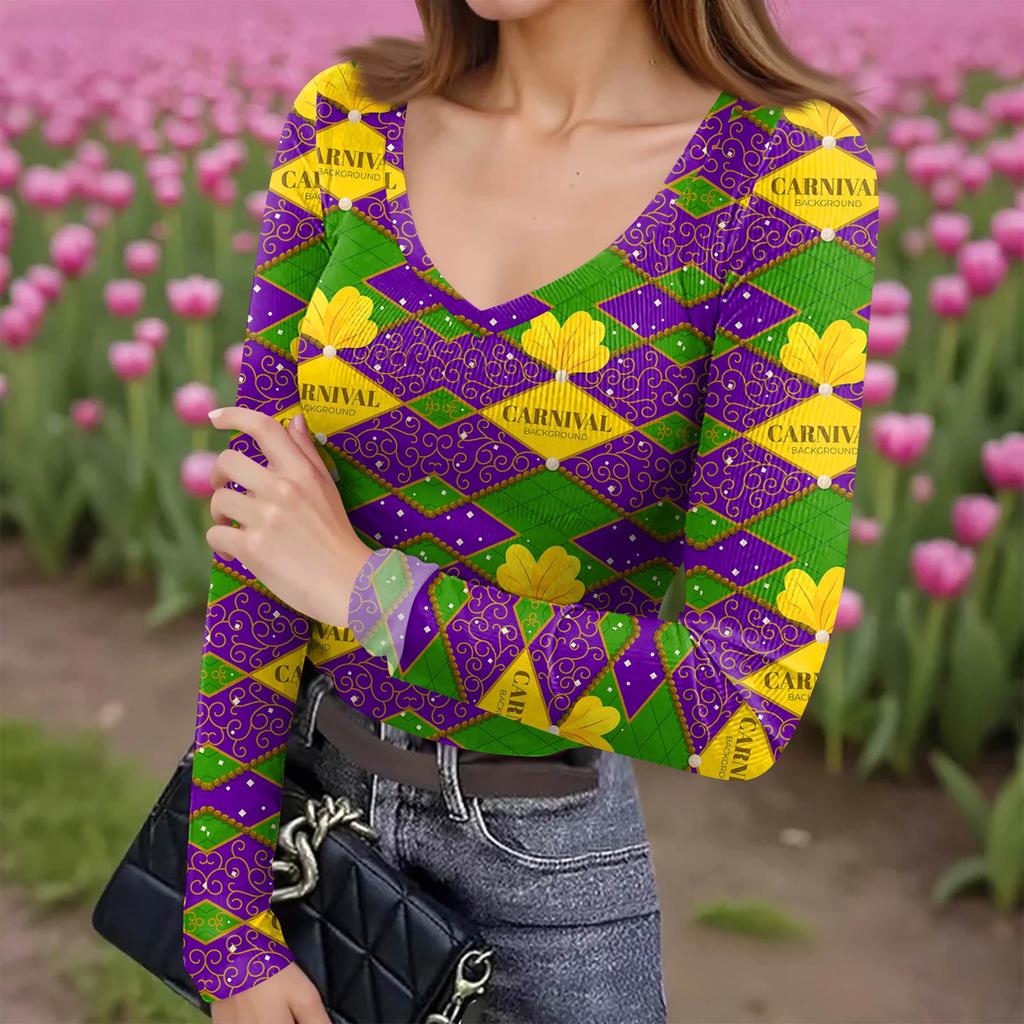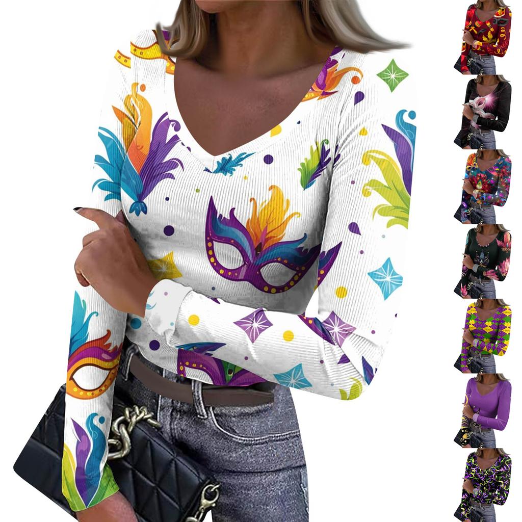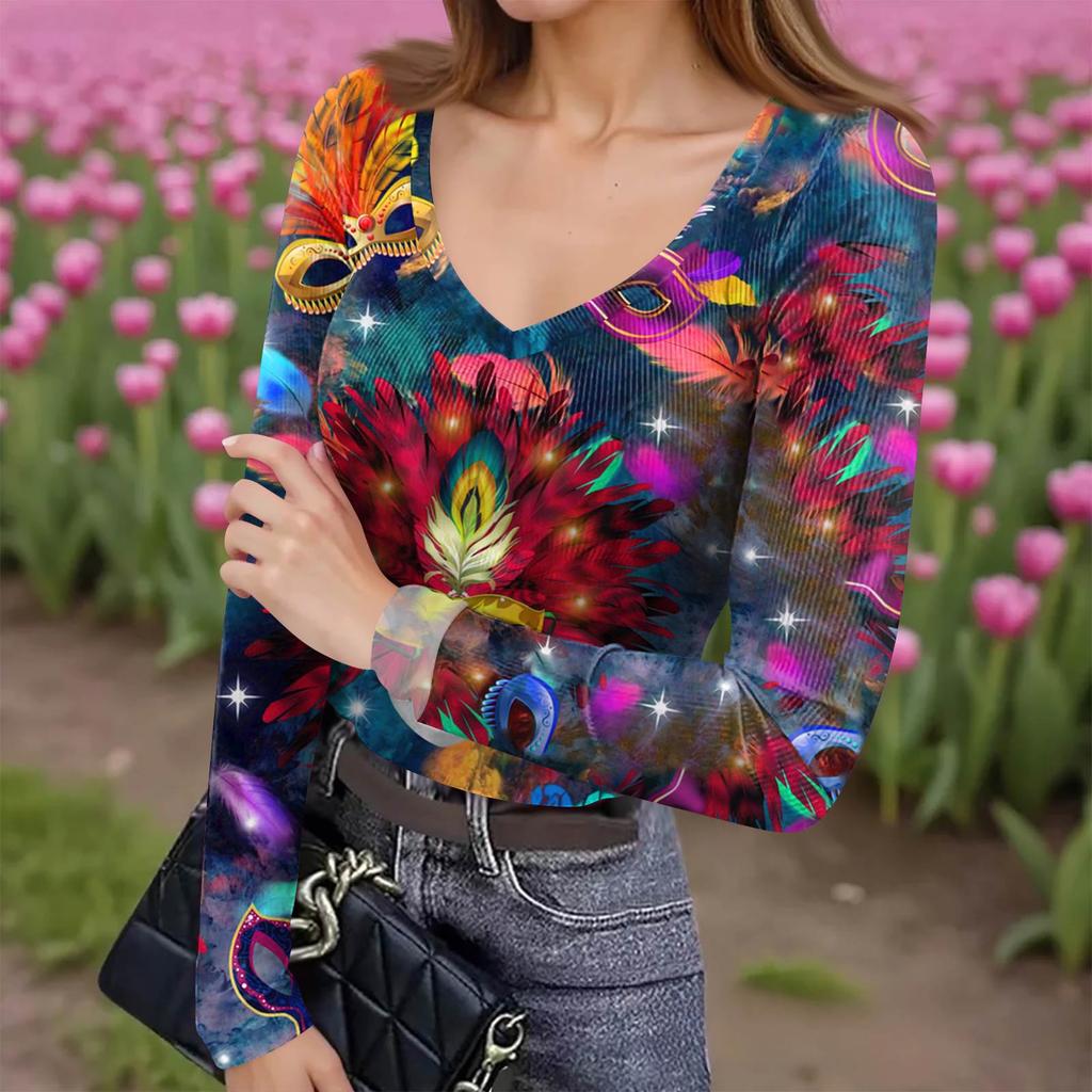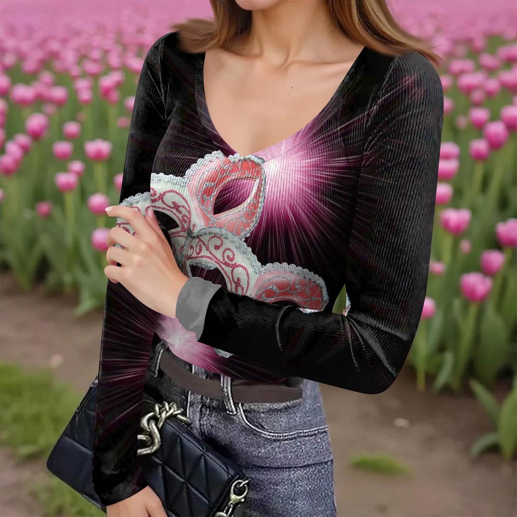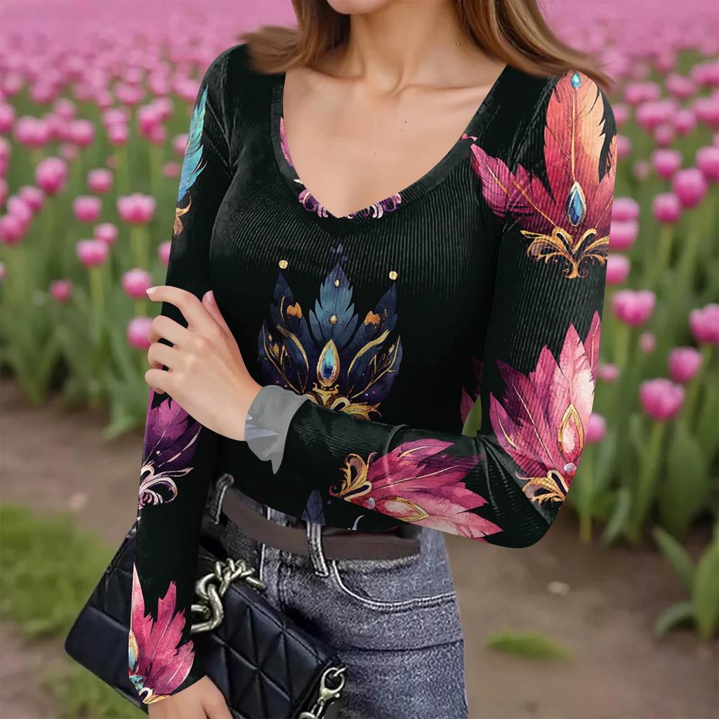 Женская зимняя приталенная футболка-базовый слой, модный принт, V-образный вырез, пуловер, топ с длинным рукавом
