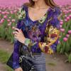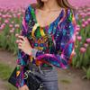 Женская зимняя приталенная футболка-базовый слой, модный принт, V-образный вырез, пуловер, топ с длинным рукавом — купить товар онлайн с бесплатной доставкой по всему миру!