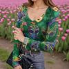 Женская зимняя приталенная футболка-базовый слой, модный принт, V-образный вырез, пуловер, топ с длинным рукавом