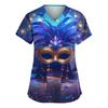 Женская модная рабочая одежда с V-образным вырезом и короткими рукавами, с карманами, топ с карнавальным принтом, униформа для сиделки