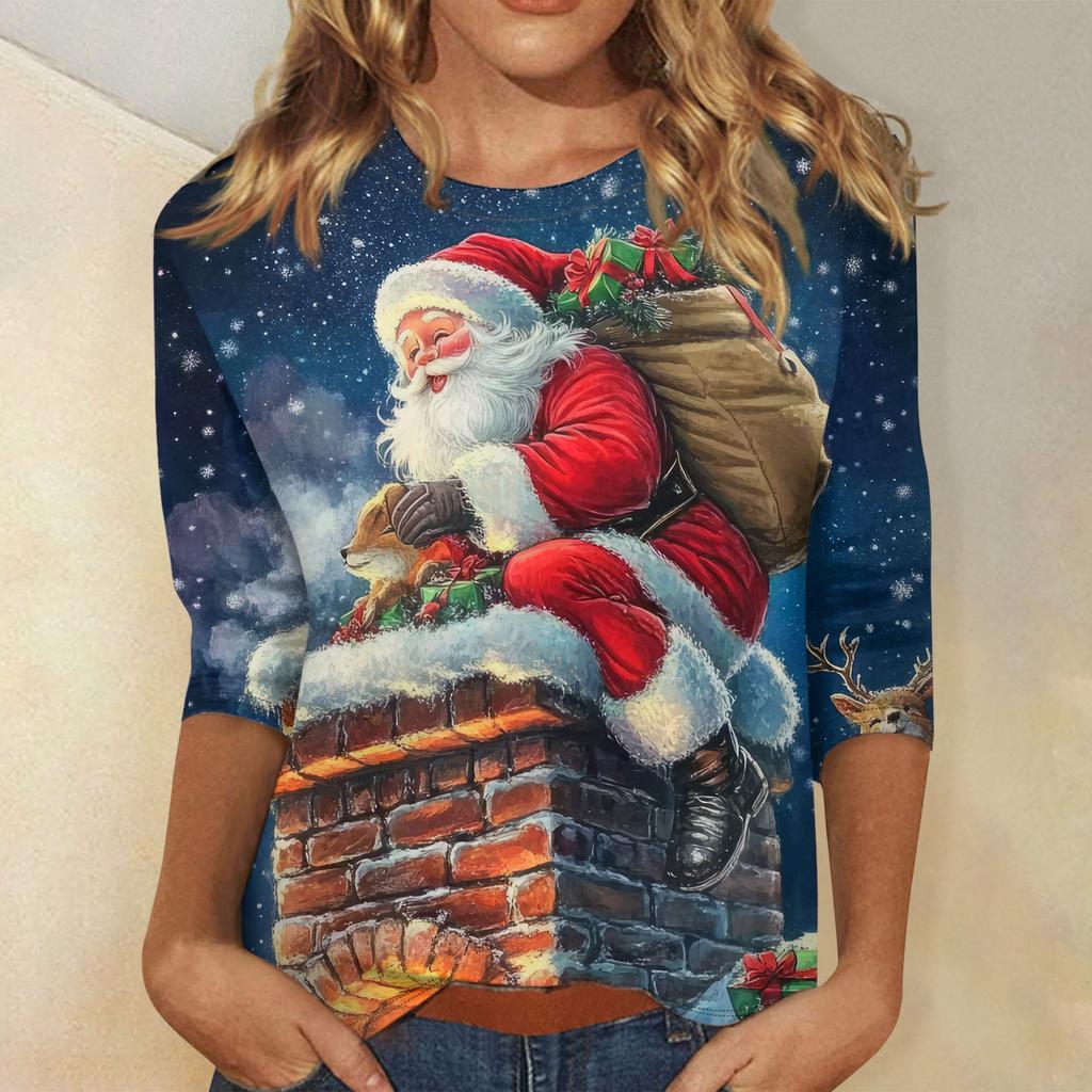 Женская модная повседневная свободная футболка с круглым вырезом и рукавами 3/4 с принтом, женский топ