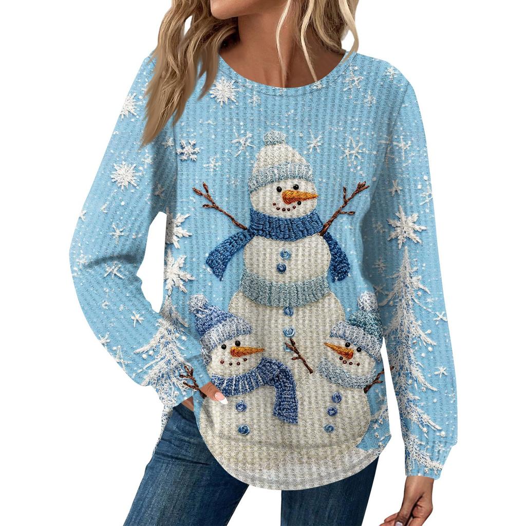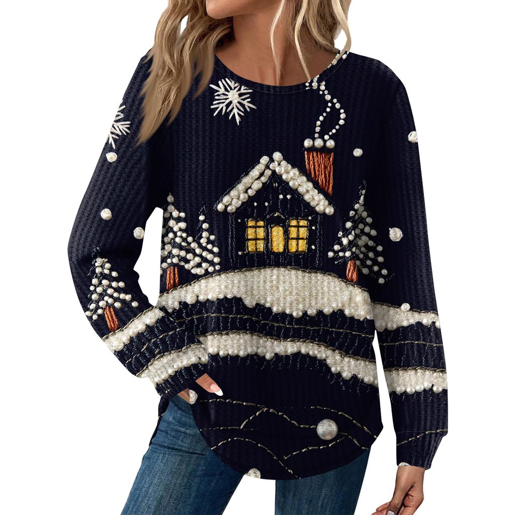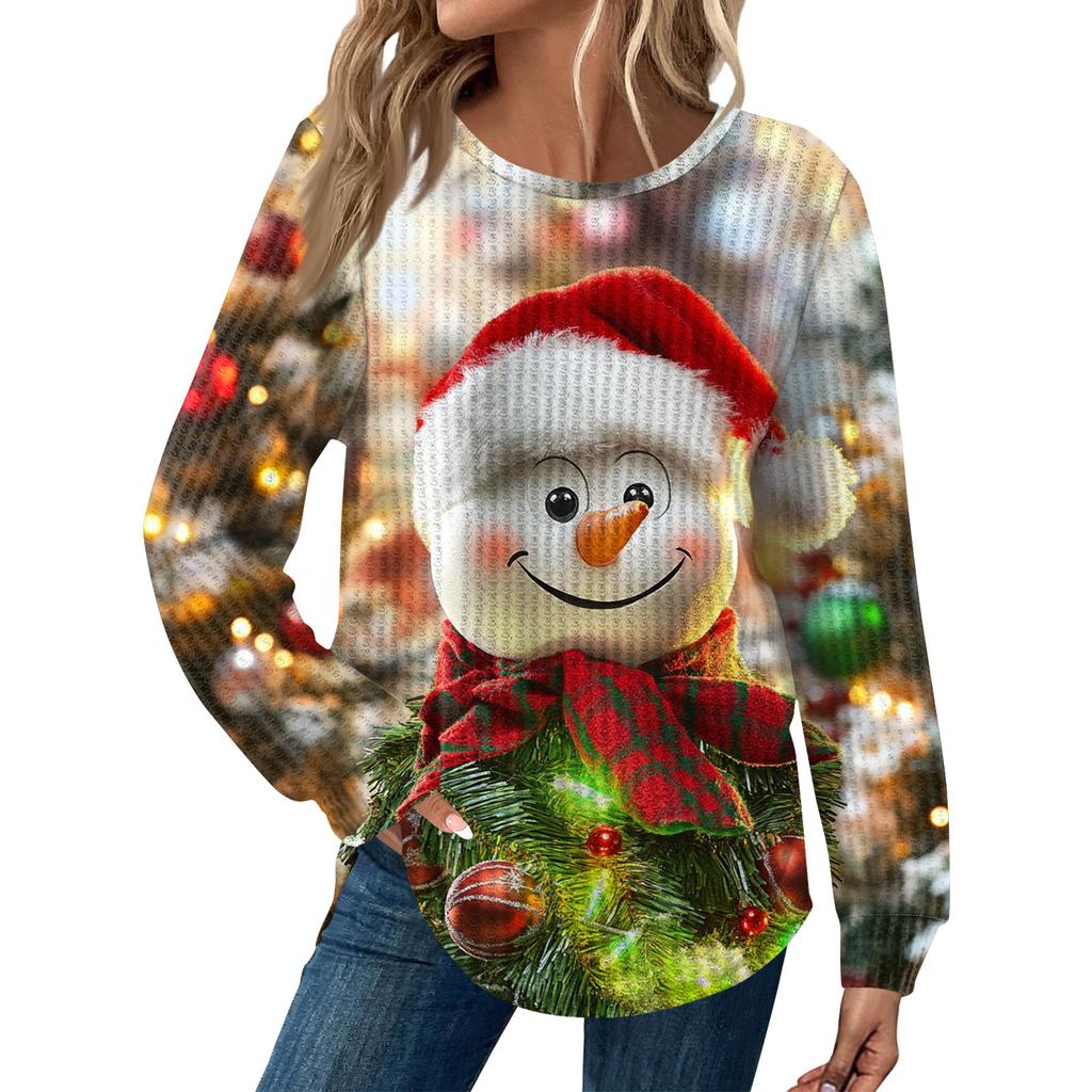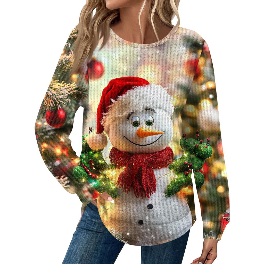 Женская мода Рождественский свободный топ с длинным рукавом и круглым вырезом