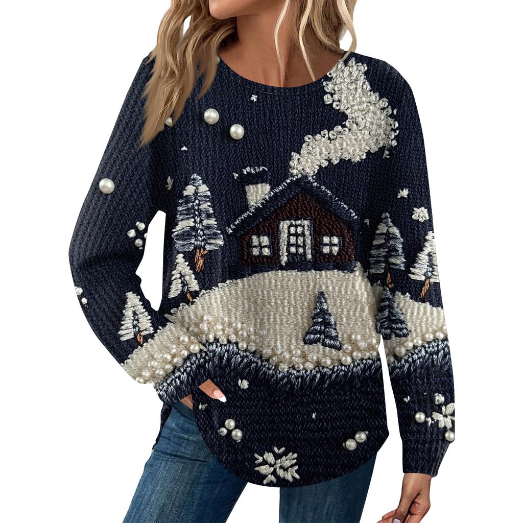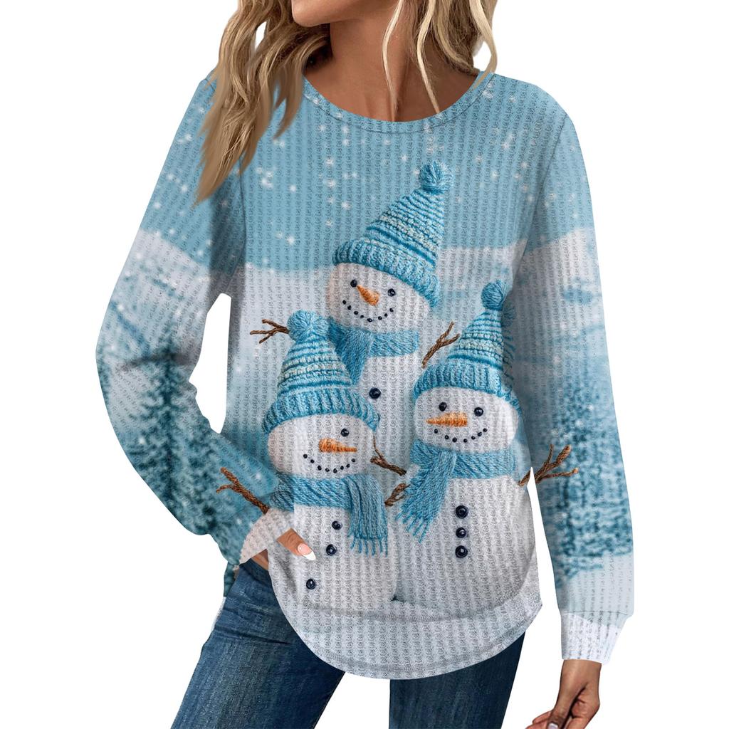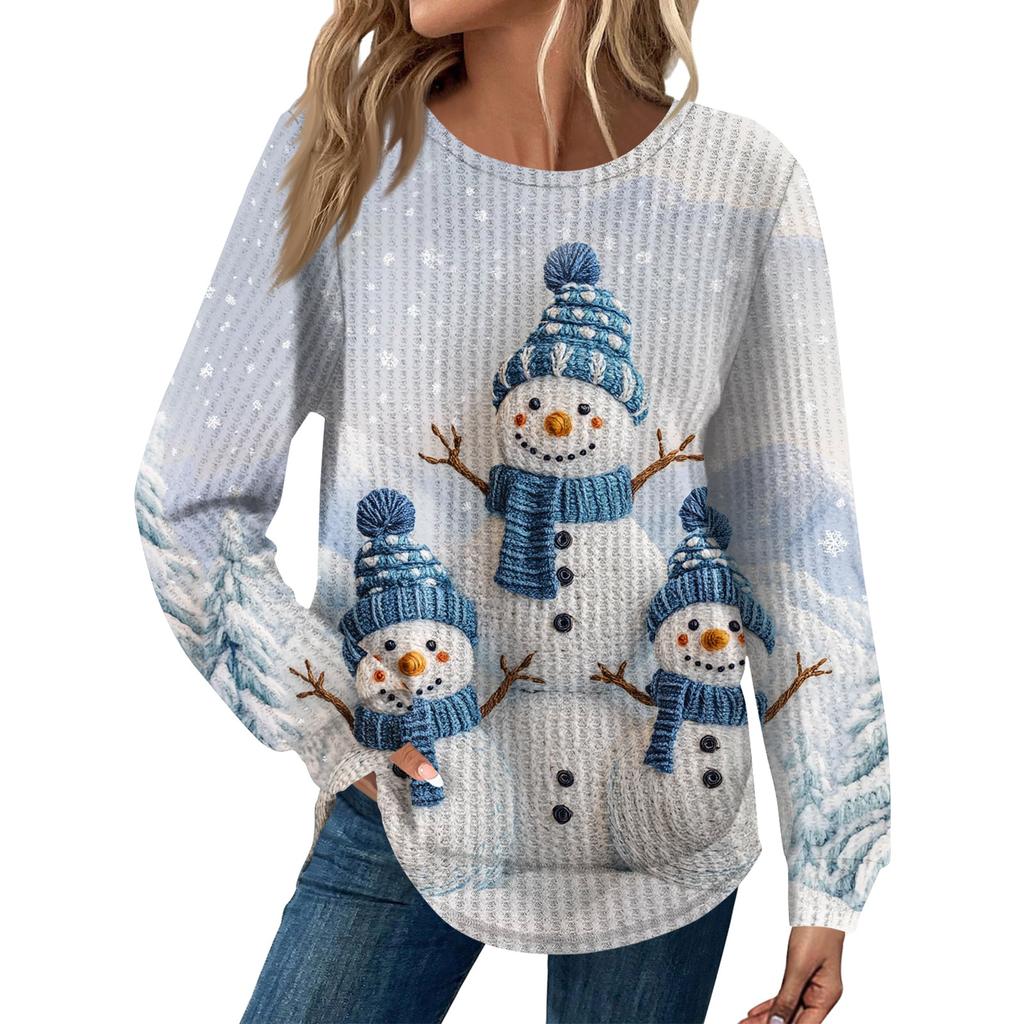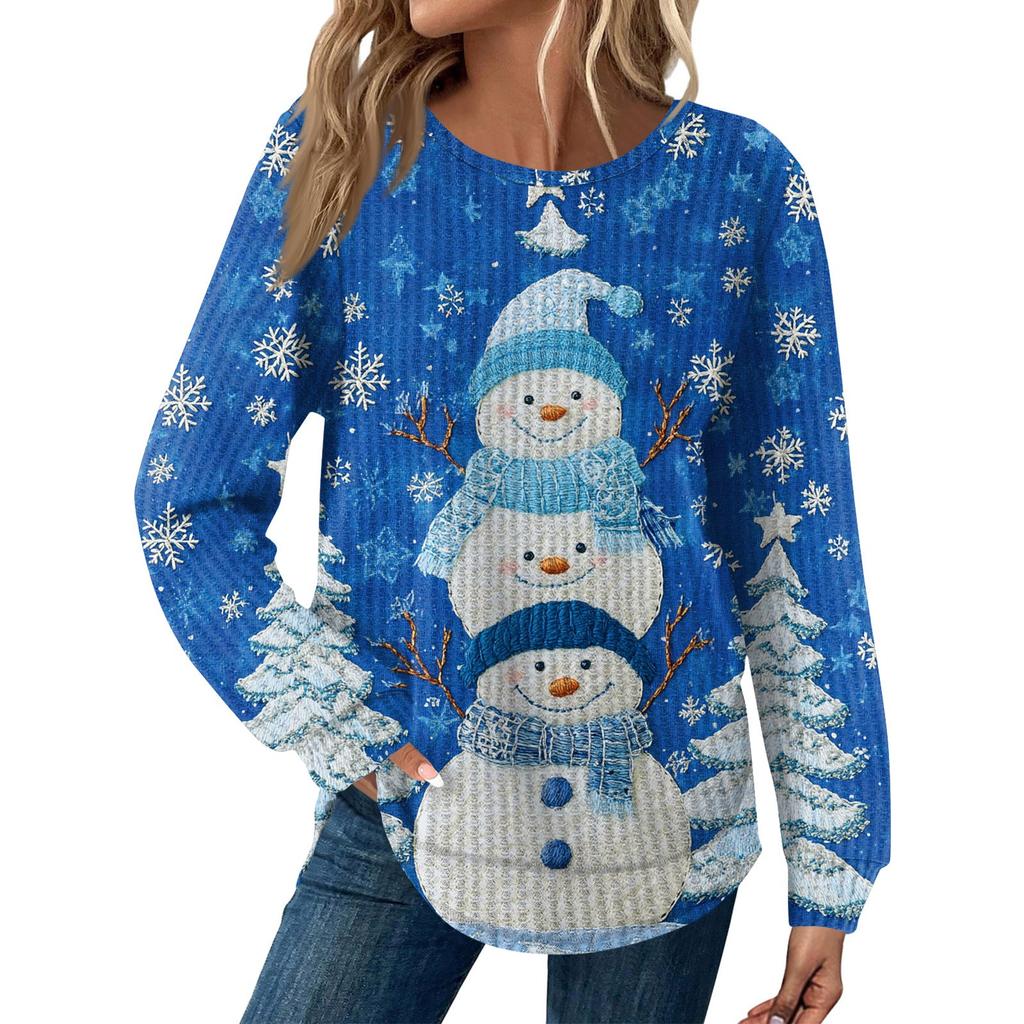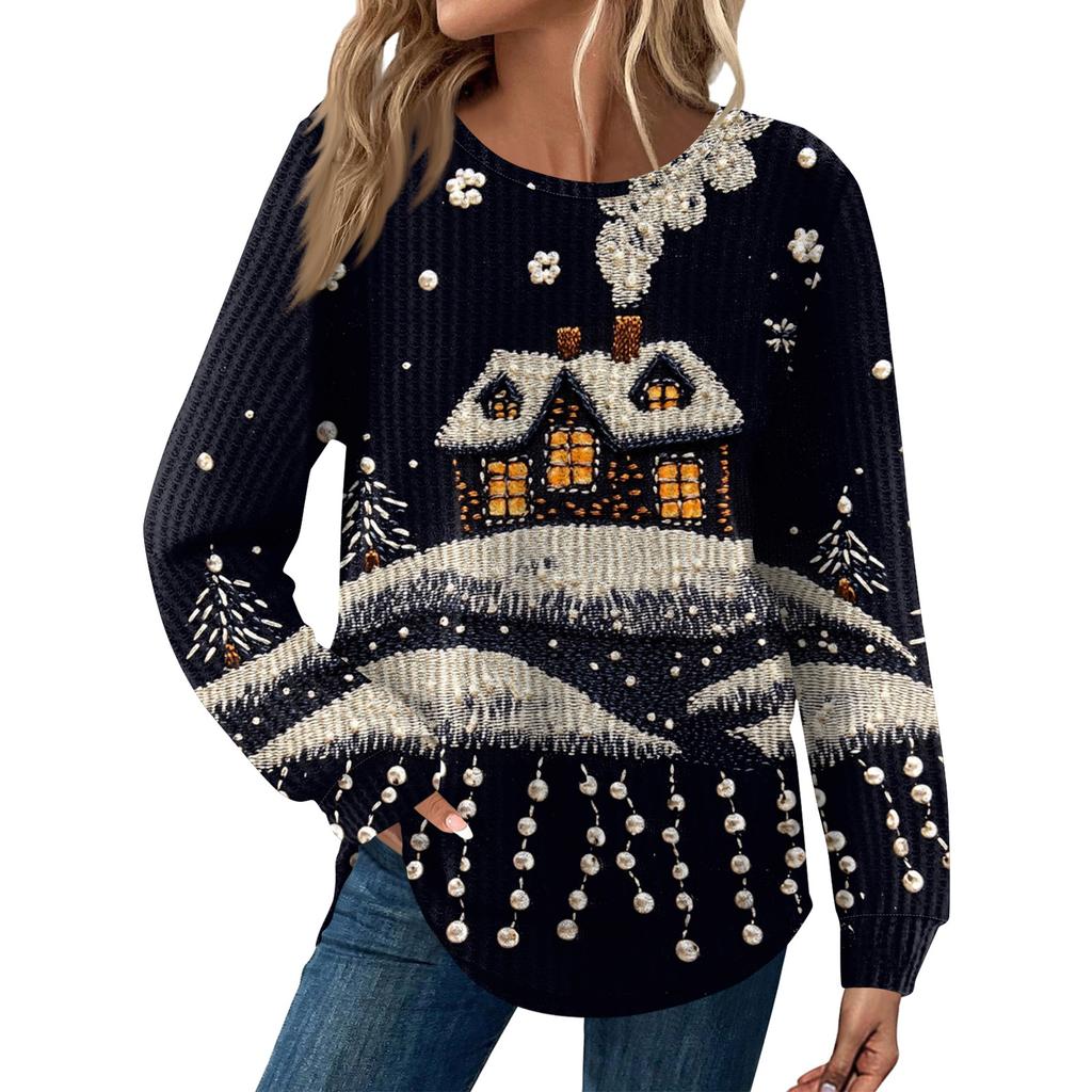 Женская мода Рождественский свободный топ с длинным рукавом и круглым вырезом