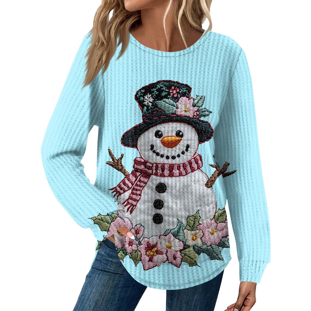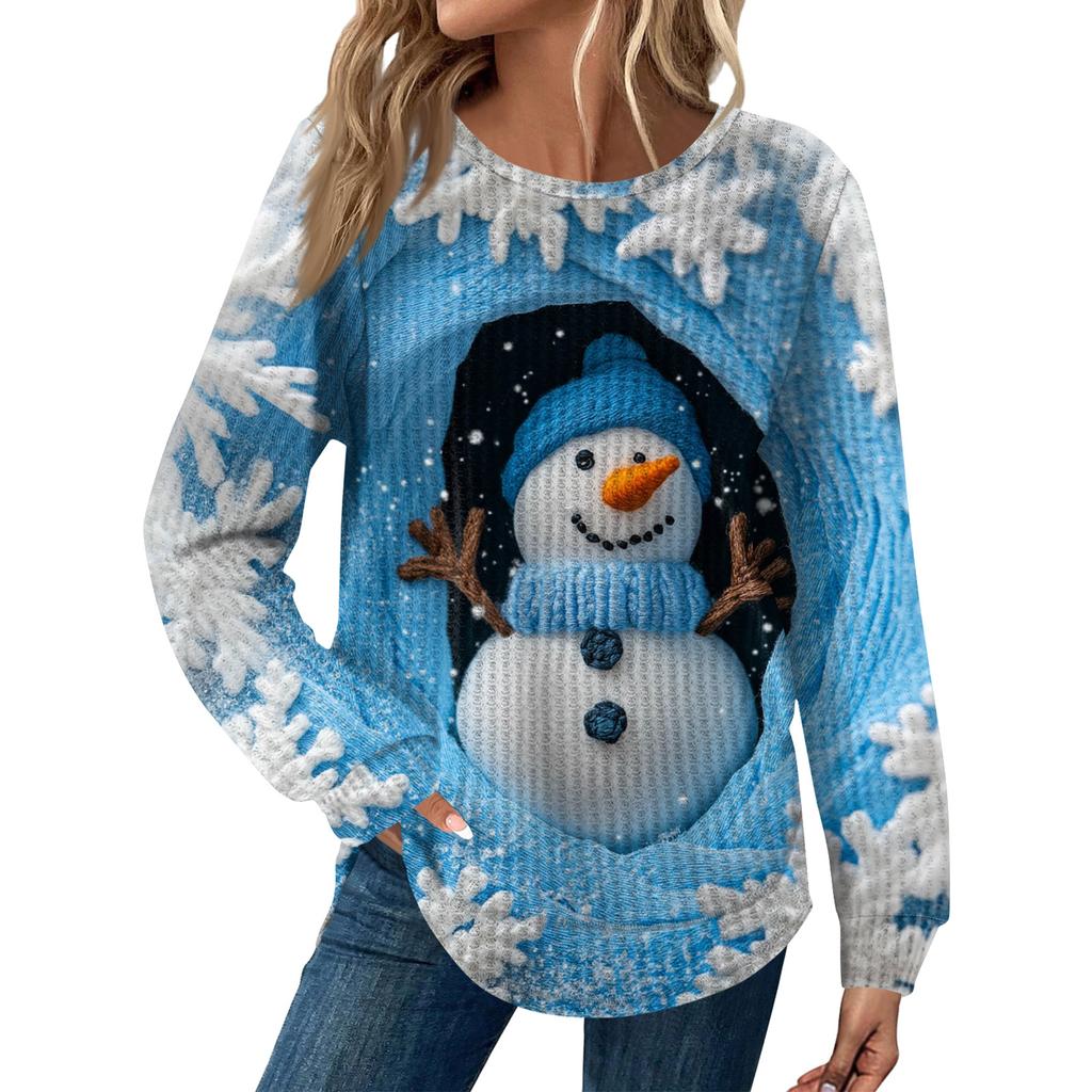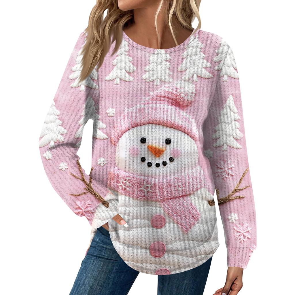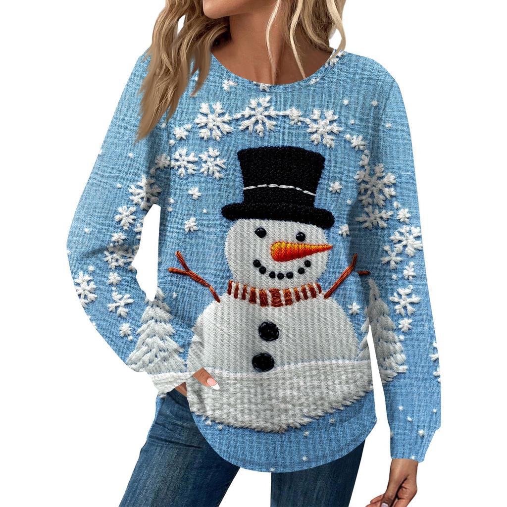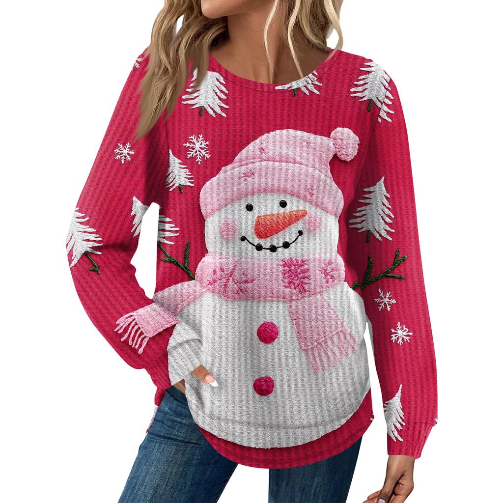 Женская мода Рождественский свободный топ с длинным рукавом и круглым вырезом