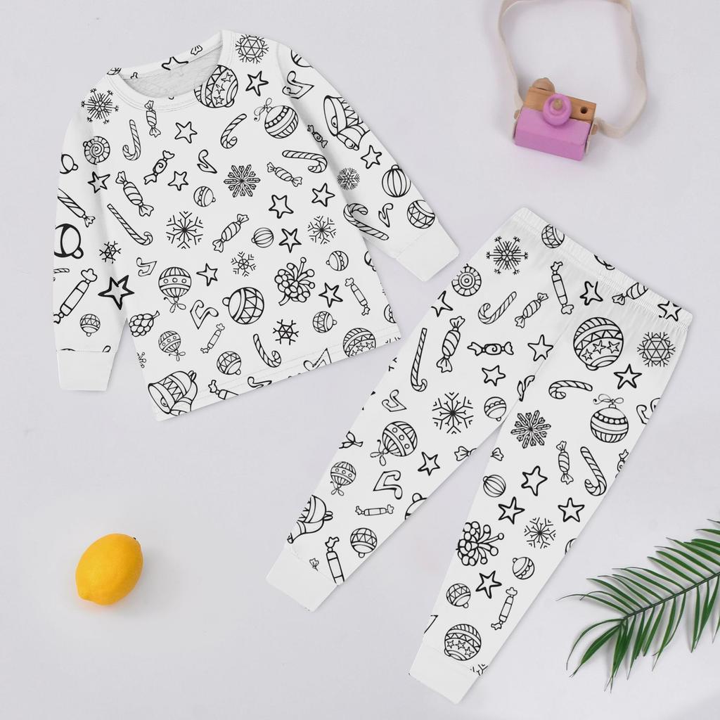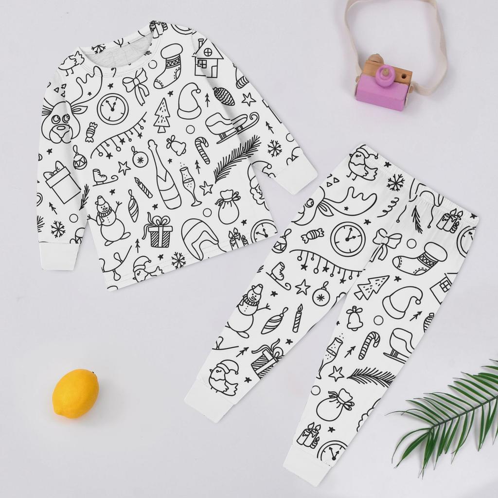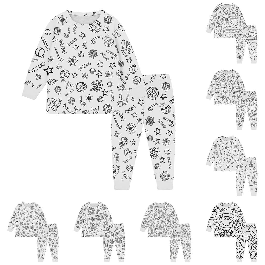 Детский модный комплект: Рождественский топ с дудлами и брюки с длинным рукавом и круглым вырезом