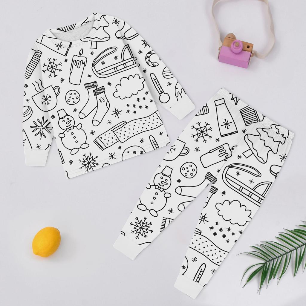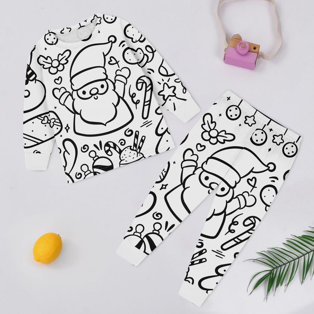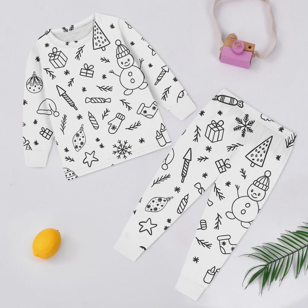 Детский модный комплект: Рождественский топ с дудлами и брюки с длинным рукавом и круглым вырезом