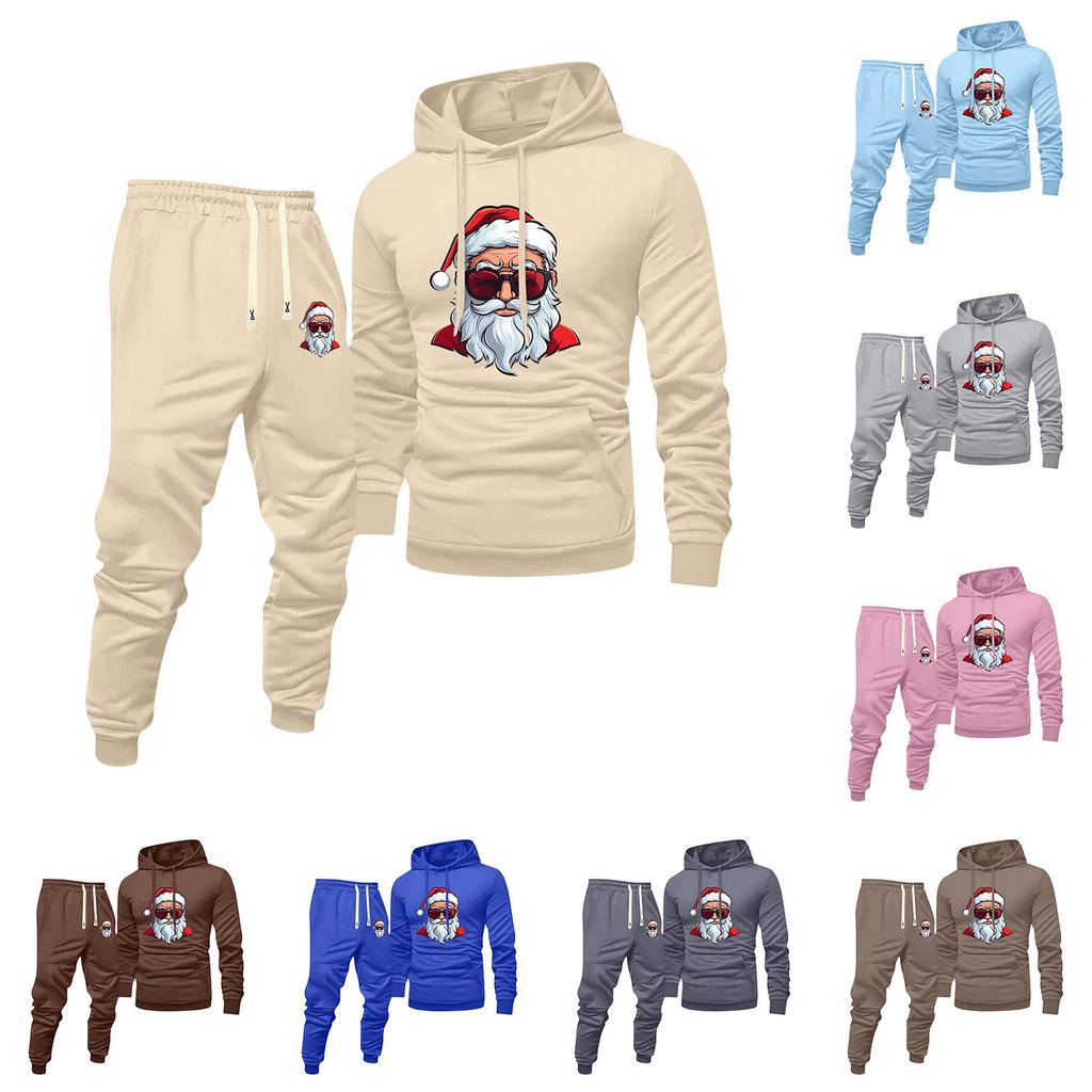 Мужской худи с принтом и спортивные штаны, повседневный спортивный костюм