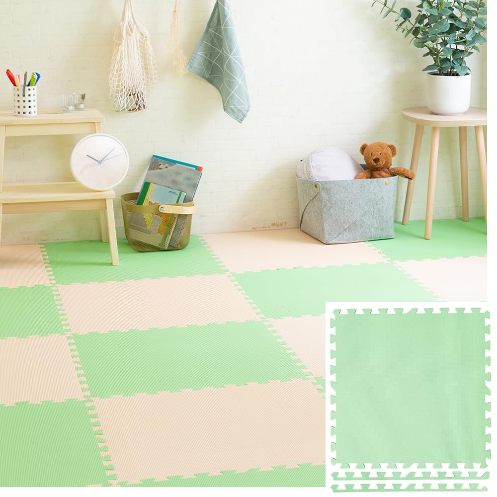 Iris Plaza Interlocking Mat, Large, 60cm x 20mm, Color Mat, Soundproofing, Pet and Baby Protection, PEJTM-602, Green, 60x60cm, Set of 4