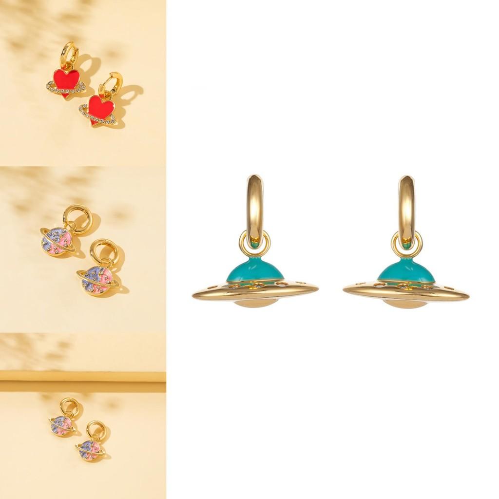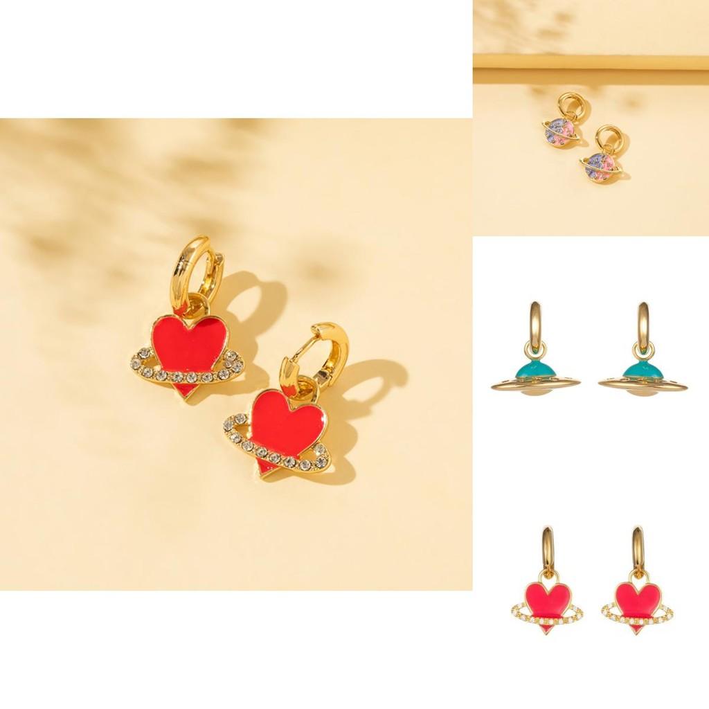 Стильные летние серьги 2022 из сплава в виде сердца и планеты для модных любителей