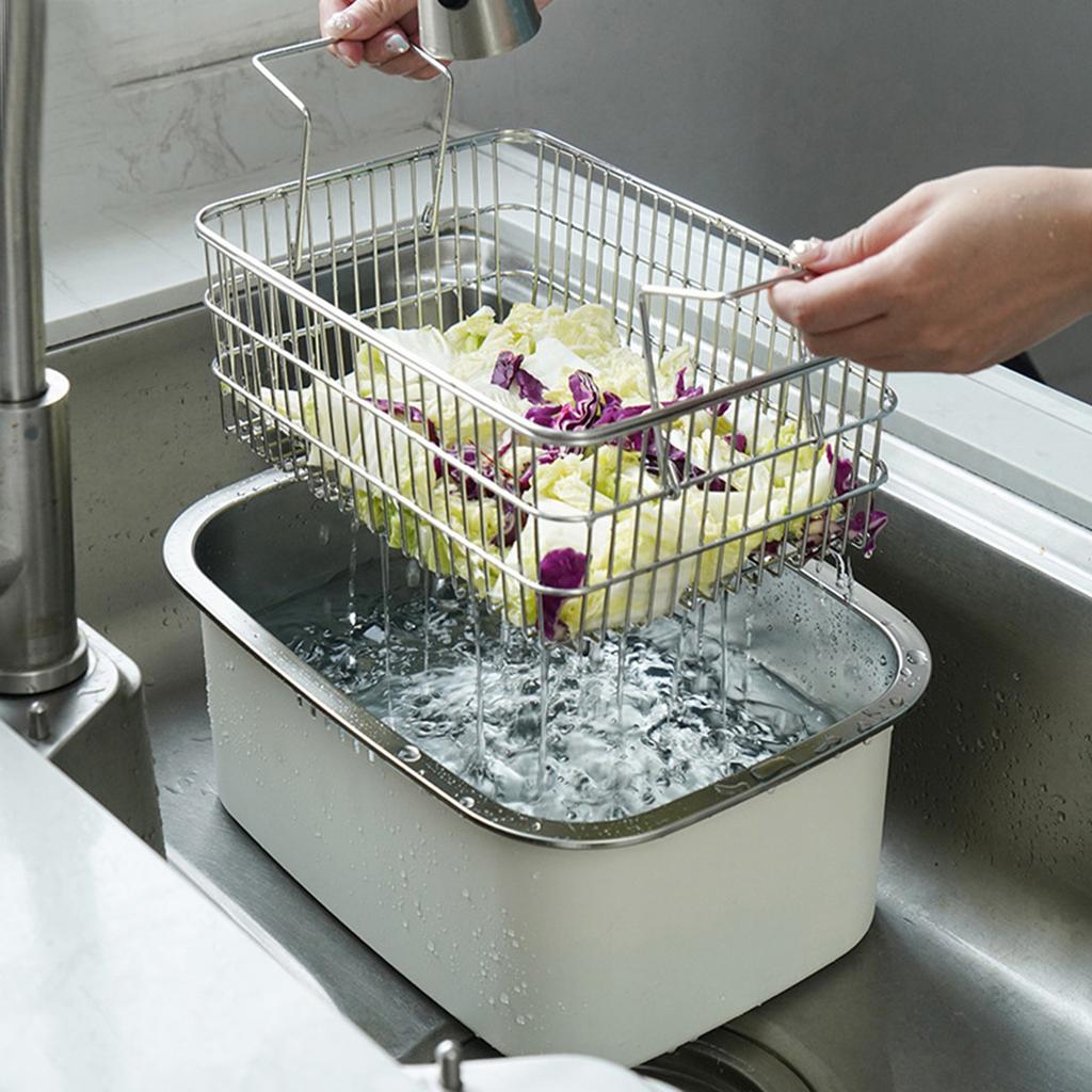 Раковина для мытья посуды из нержавеющей стали 304 7,5 л Многоцелевая ванна для посуды для раковины Большая емкость для мытья овощей Таз для мытья посуды с корзиной для слива Кремовый