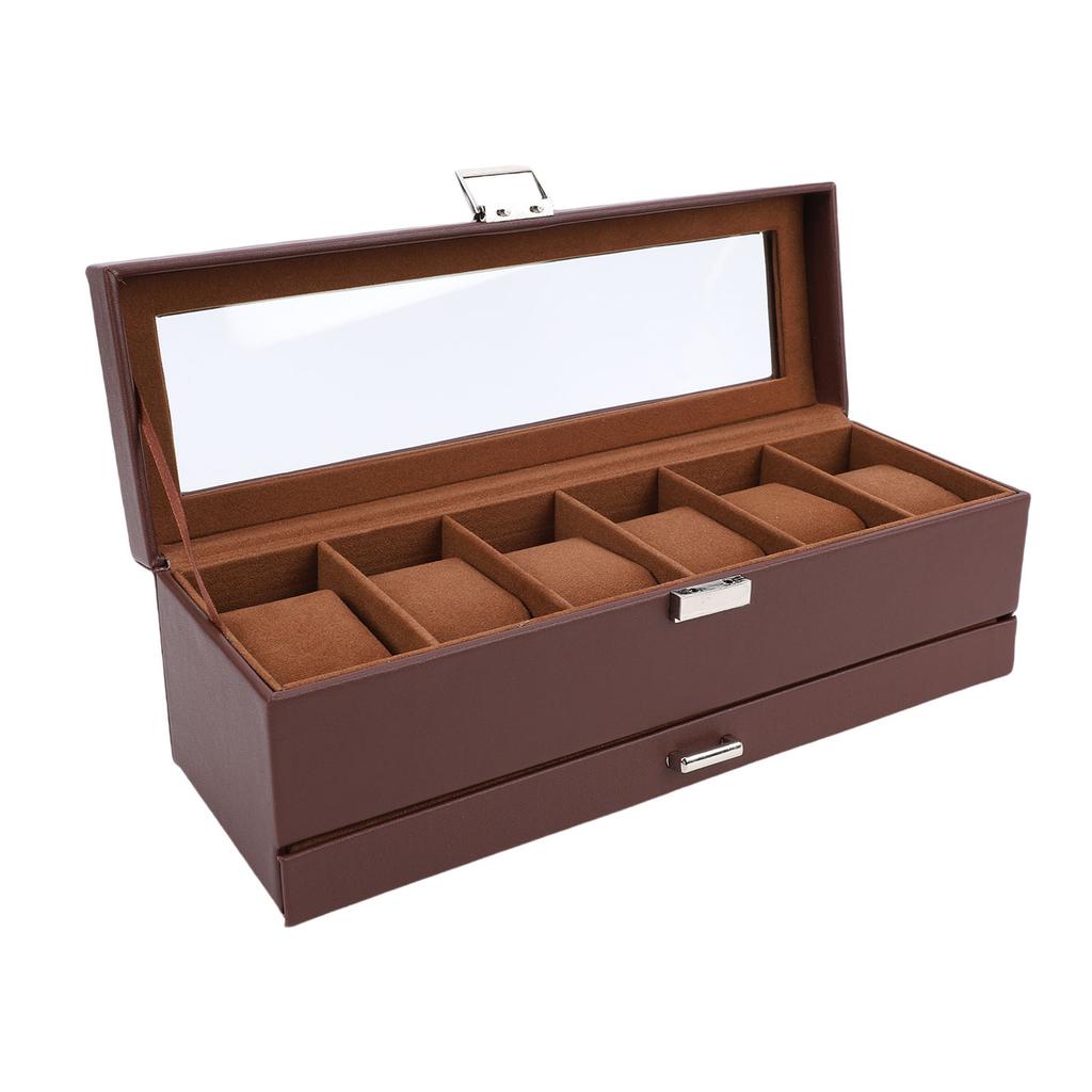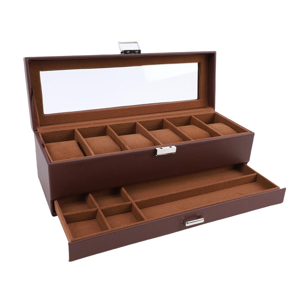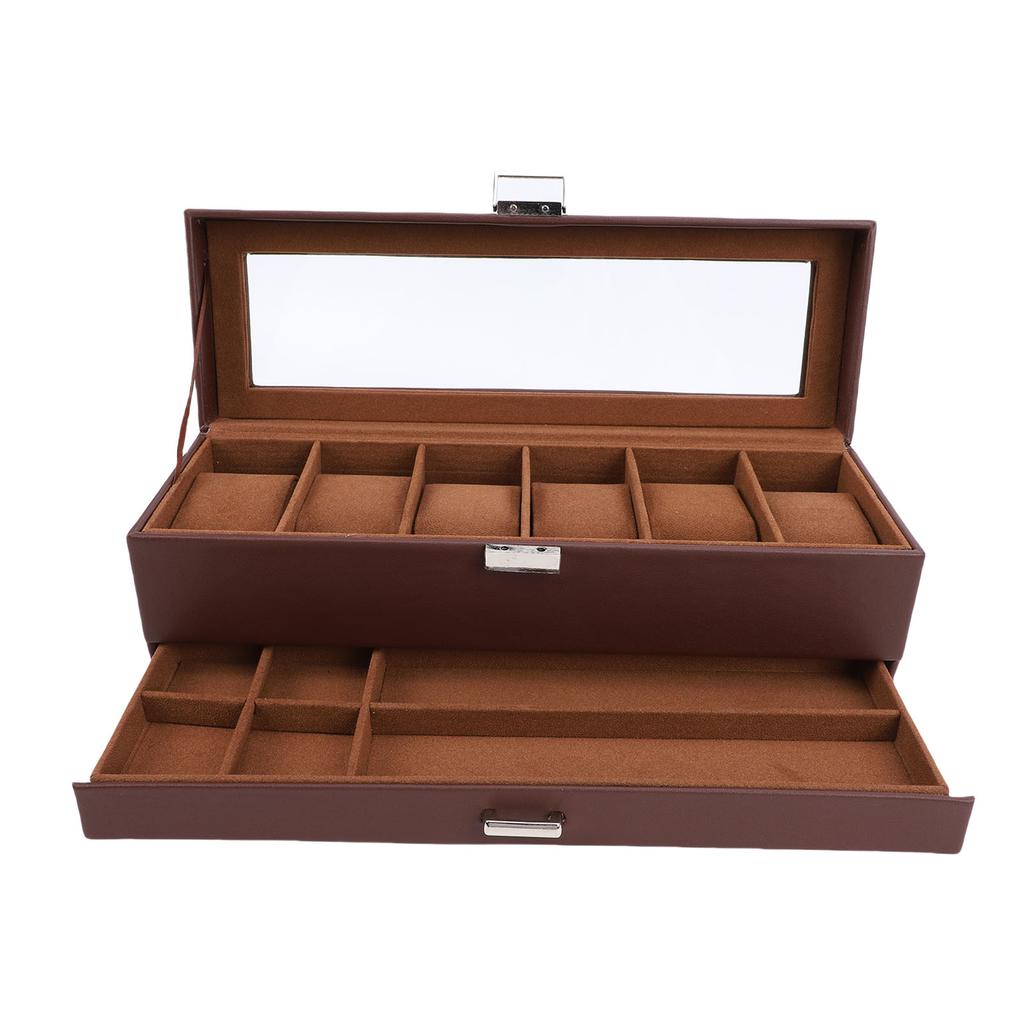 Коробка для часов для мужчин Кожа 6 ячеек 2 слоя Витрина для часов для хранения коллекции часов и ювелирных изделий Коричневый