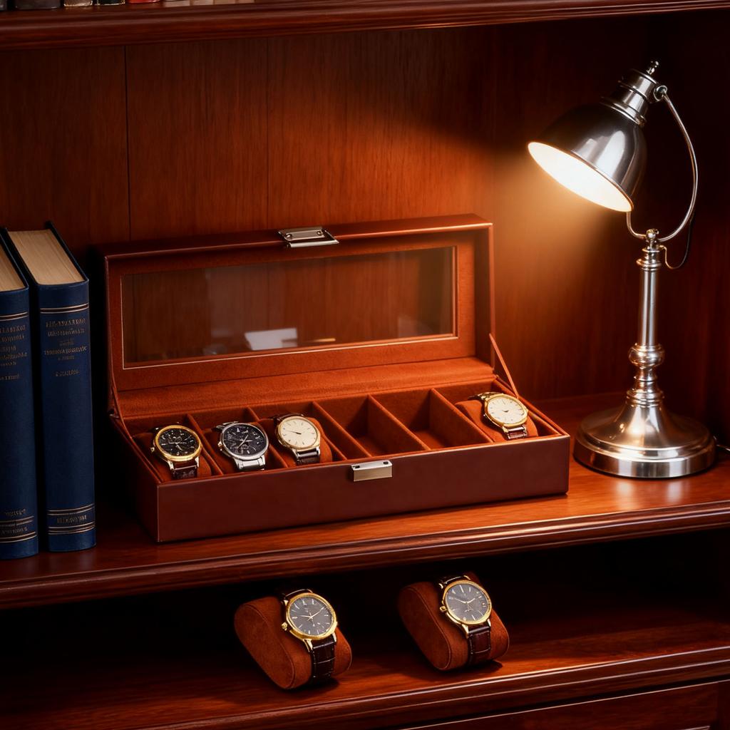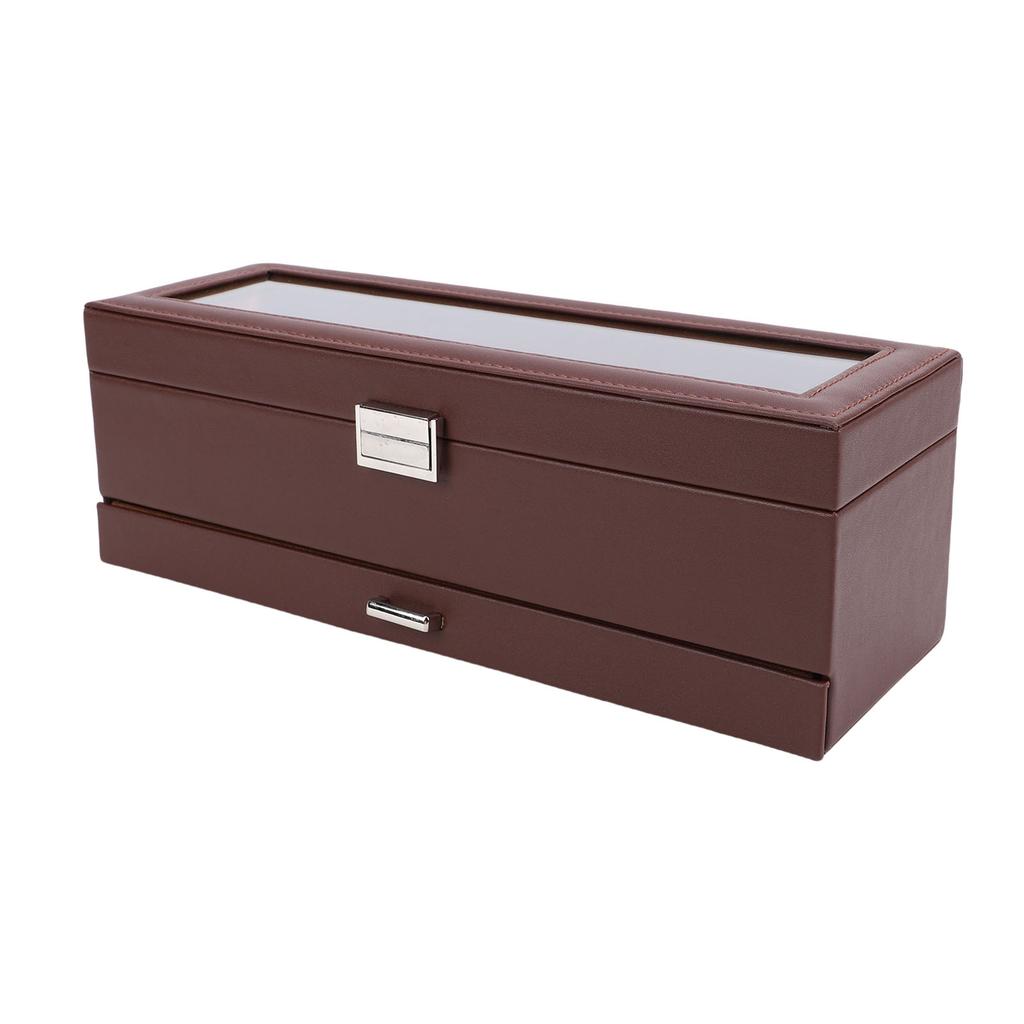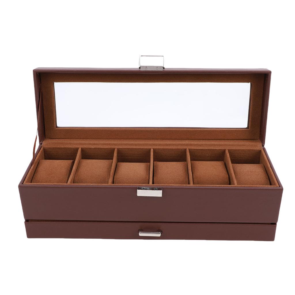 Коробка для часов для мужчин Кожа 6 ячеек 2 слоя Витрина для часов для хранения коллекции часов и ювелирных изделий Коричневый